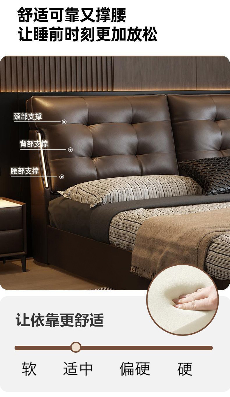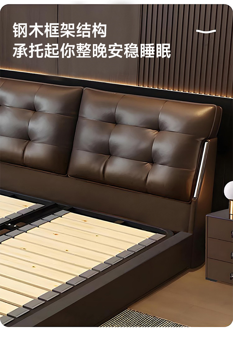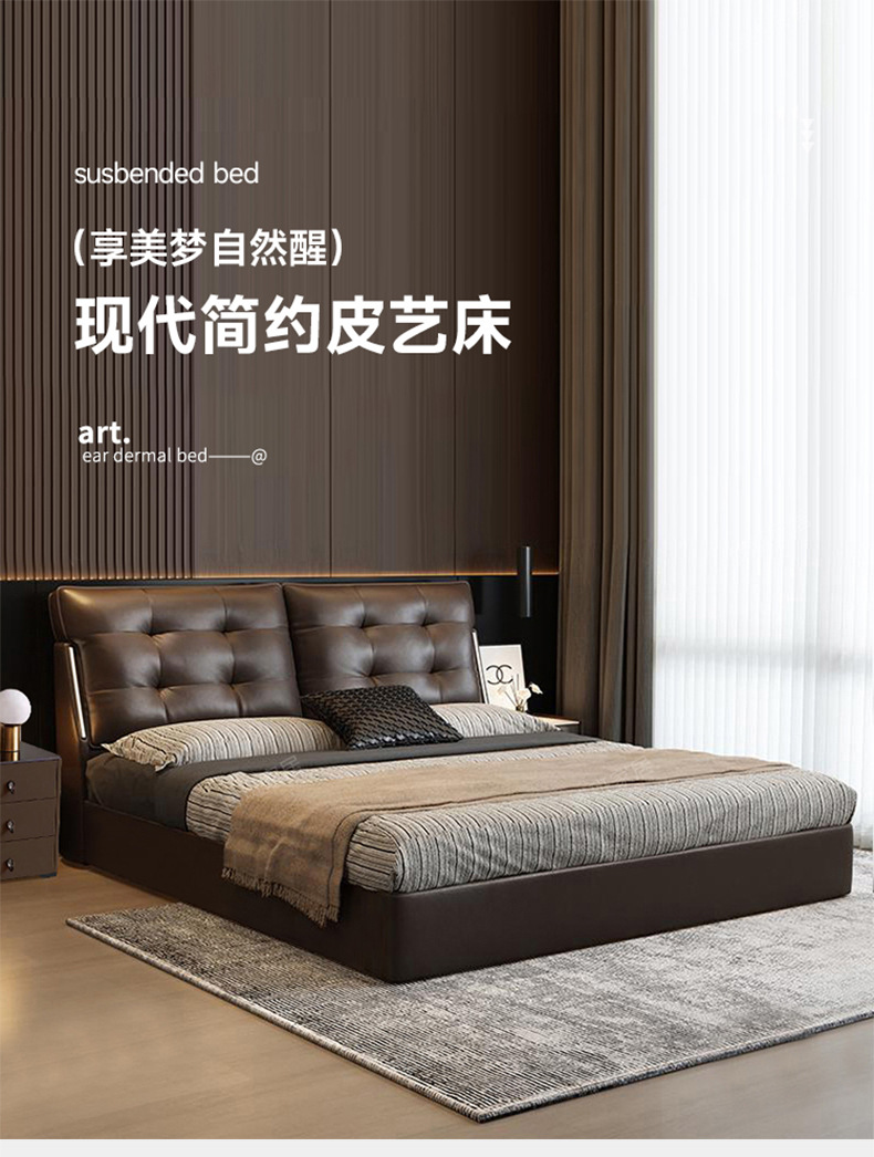 Современная минималистичная кожаная кровать черная 1.8м с ночником, нубуковая кожаная свадебная кровать, мягкая упаковка, популярная кровать с хранением для спальни