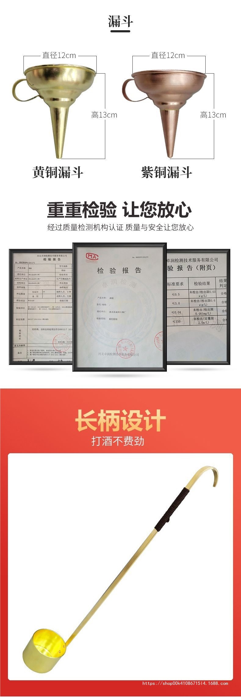Утолщенная медная воронка для вина, большие и маленькие размеры, мерная ложка для вина, длинная ручка, воронка из латуни