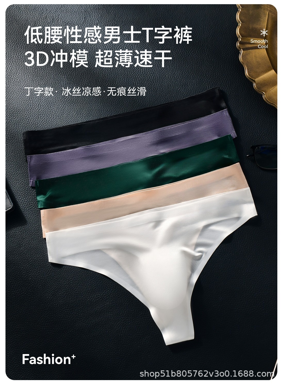 Европейские и американские мужские стринги однотонные бесшовные низкие сексуальные трусы из ледяного шелка с 3D выступом