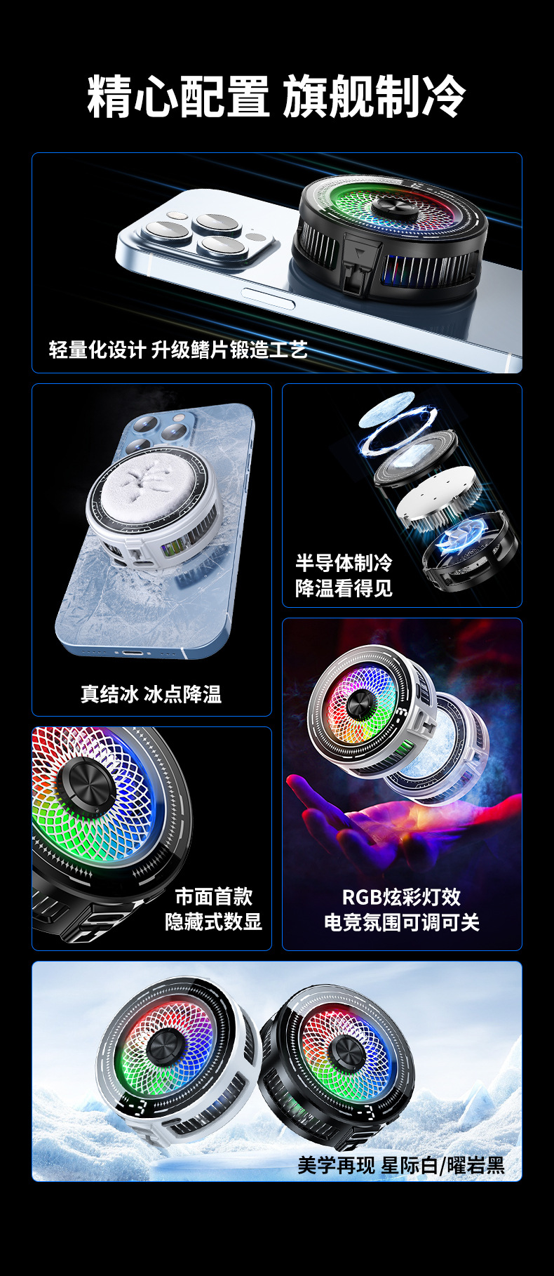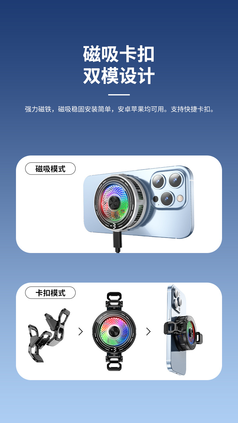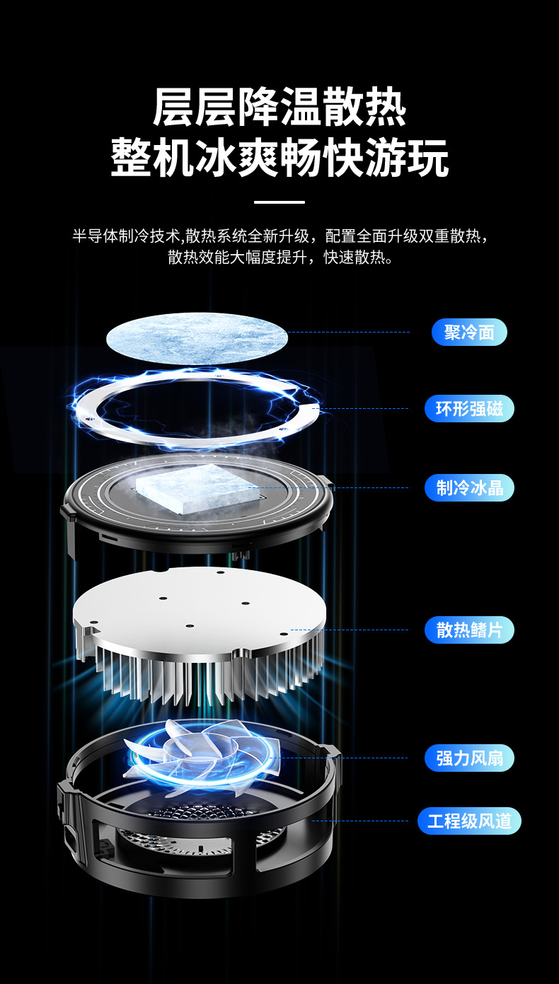 Tl03 Охлаждающее устройство для мобильного телефона, охладитель с контролем температуры и магнитным всасыванием, полупроводниковое охлаждение, режим отключения света, три уровня заморозки