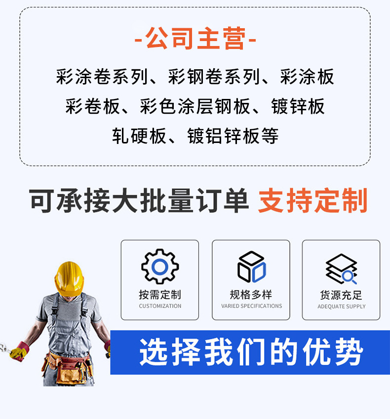 Цветные рулоны среднего и высокого класса, поставляемые напрямую производителями из Цзянсу, Чжэцзян и Шанхая, с толщиной 0.3-1.2 мм, оцинкованная основа, высокая прочность, антикоррозийная