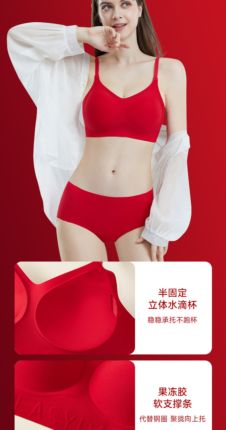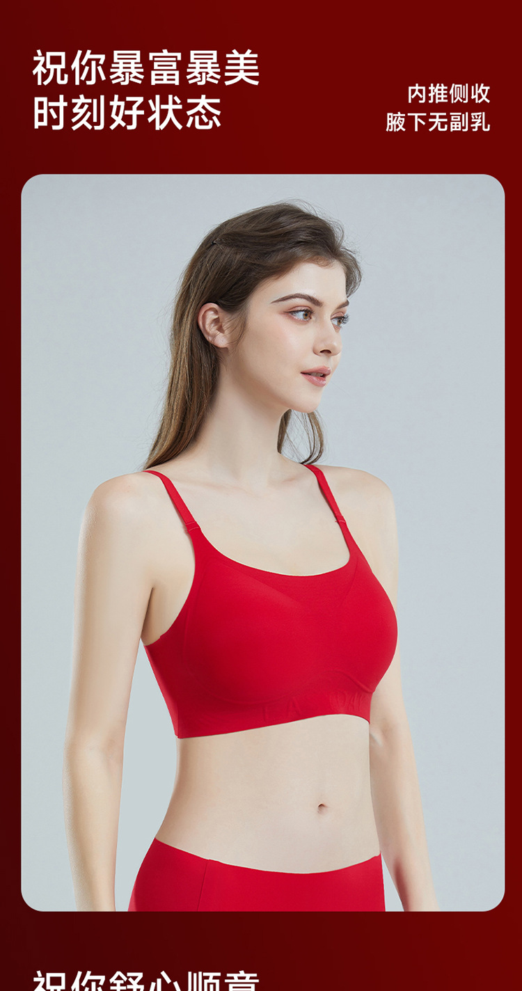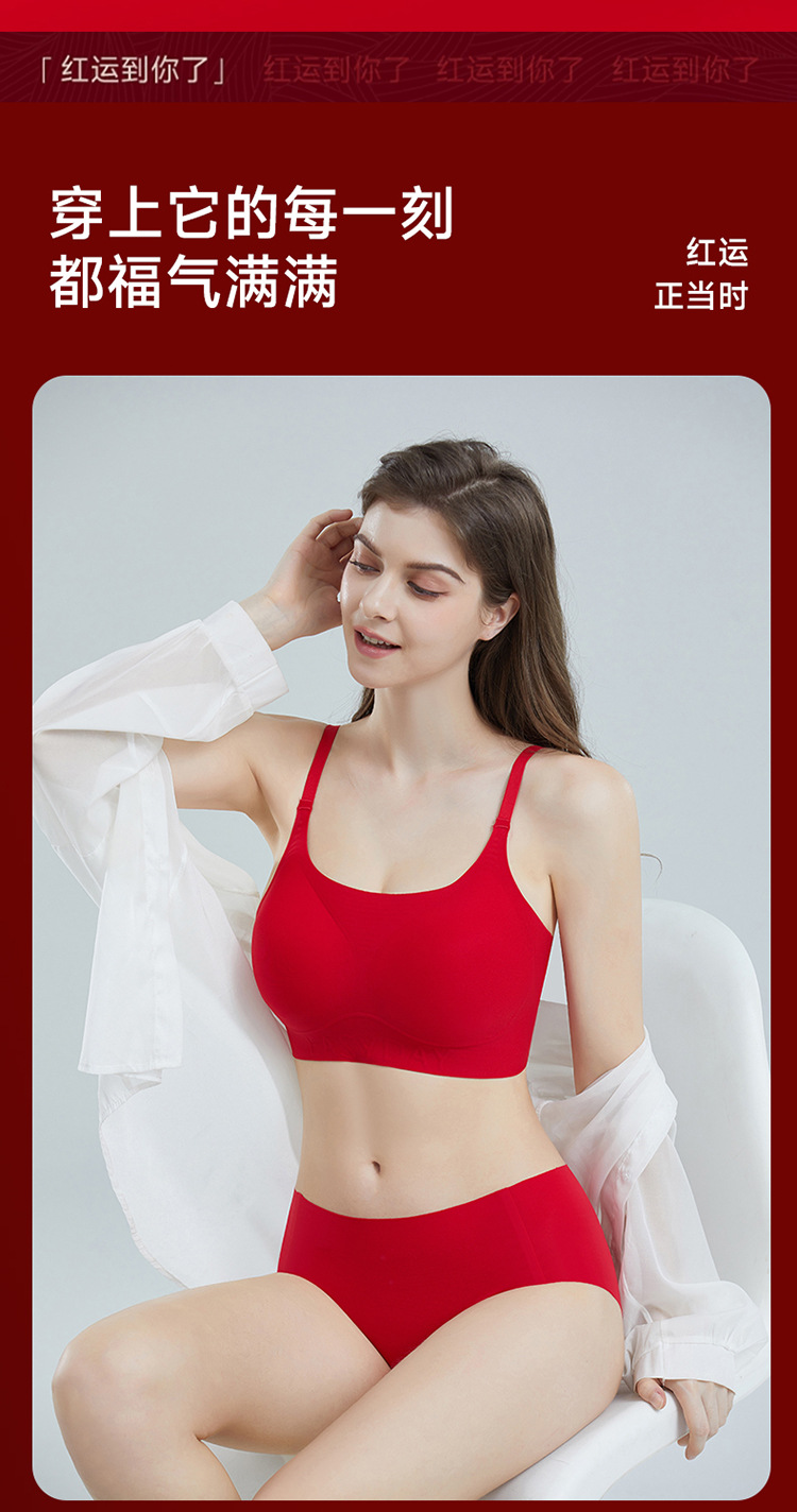 Новый красный комплект нижнего белья для женщин в год зодиака без ободков, бесшовный бюстгальтер для маленькой груди, пуш-ап, фиксированная чаша
