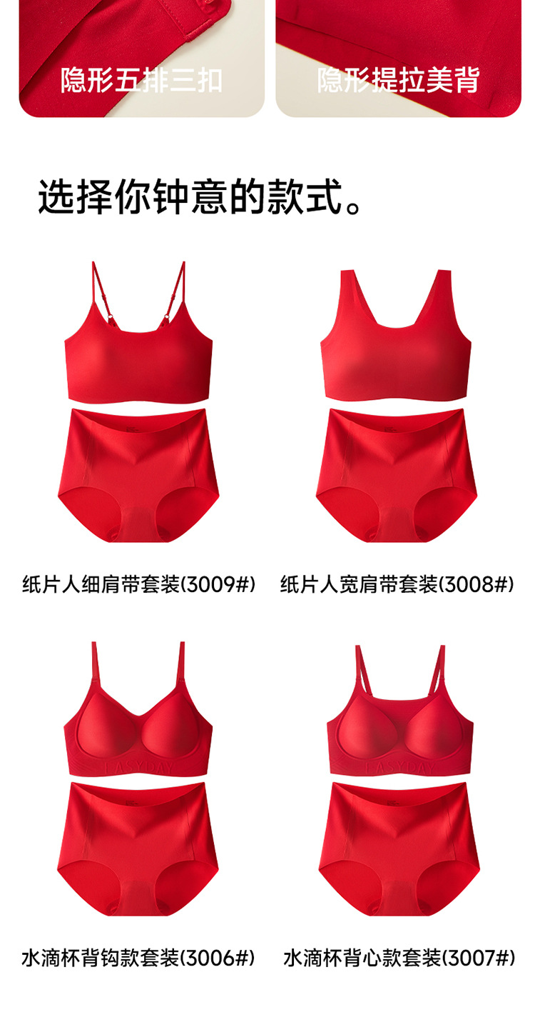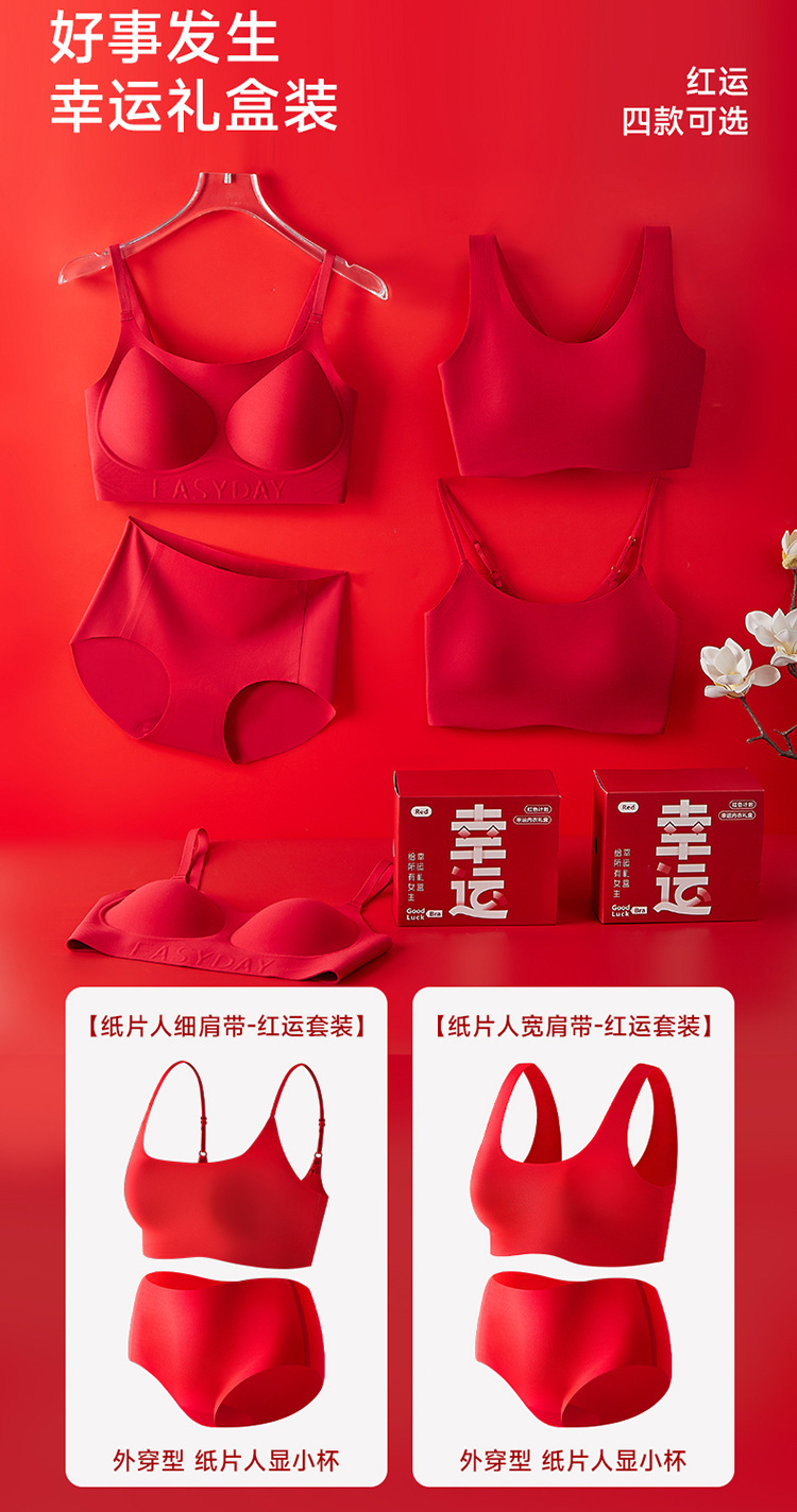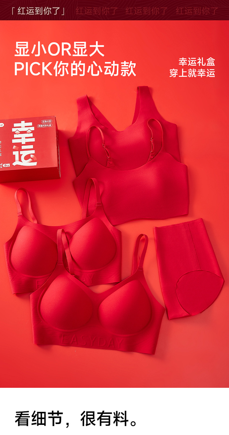 Новый красный комплект нижнего белья для женщин в год зодиака без ободков, бесшовный бюстгальтер для маленькой груди, пуш-ап, фиксированная чаша