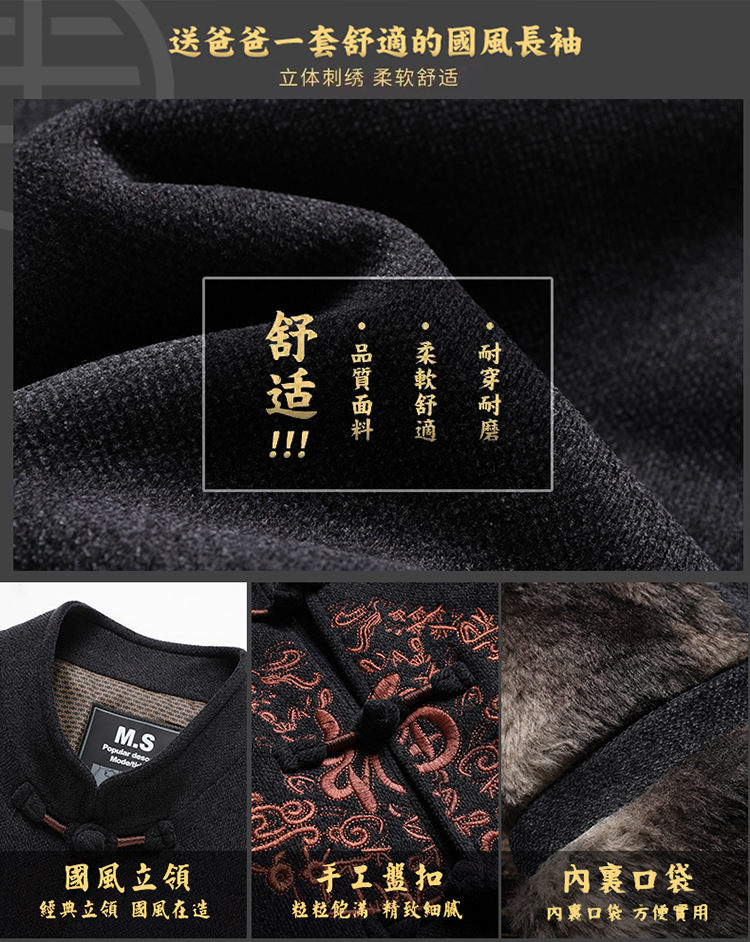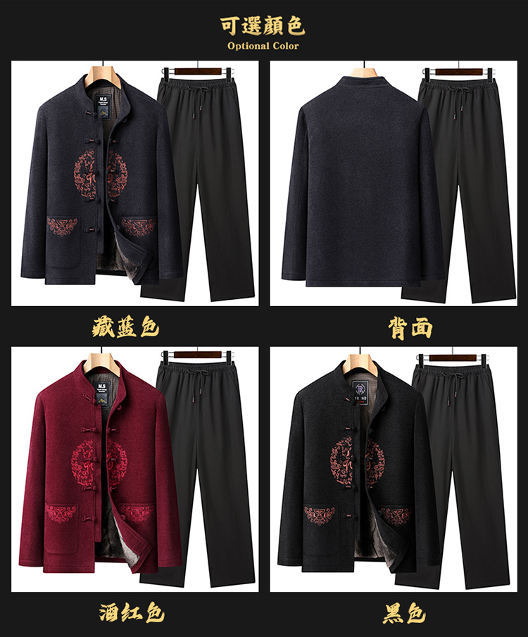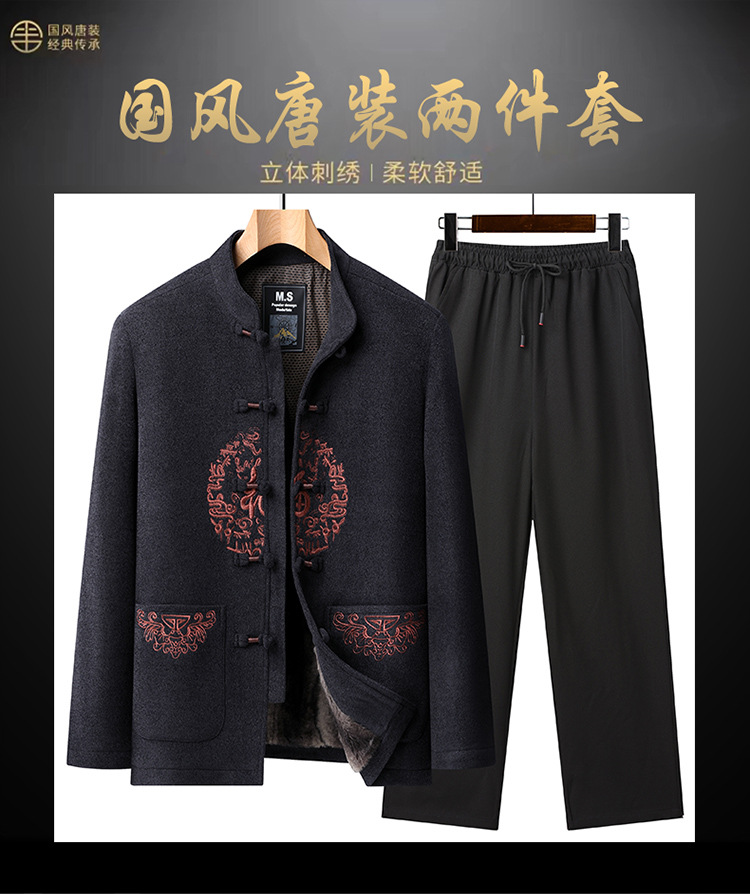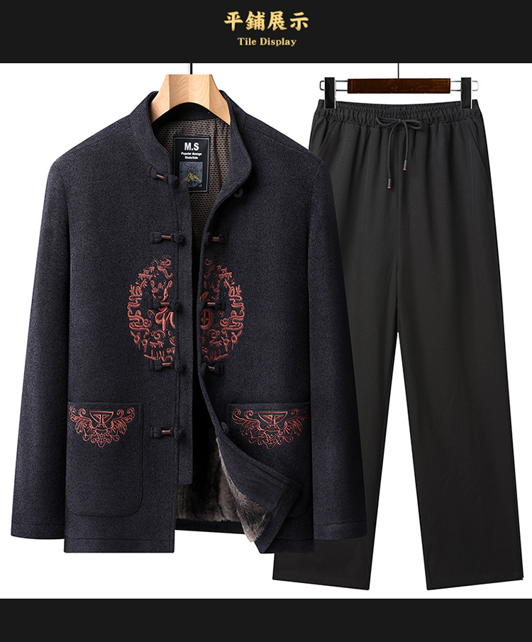 Китайский зимний костюм тан для мужчин средних и пожилых, одежда для папы и дедушки, праздничный китайский стиль, с застежкой, элегантная однотонная вышивка