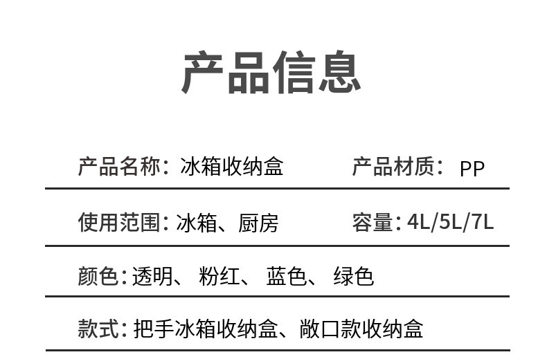 冰箱收纳盒,矮款重量约177克,尺寸28(24)*15(12.5)*11.5CM,高款重量约201克,尺寸28(24)*15(12.5)*15CM.
