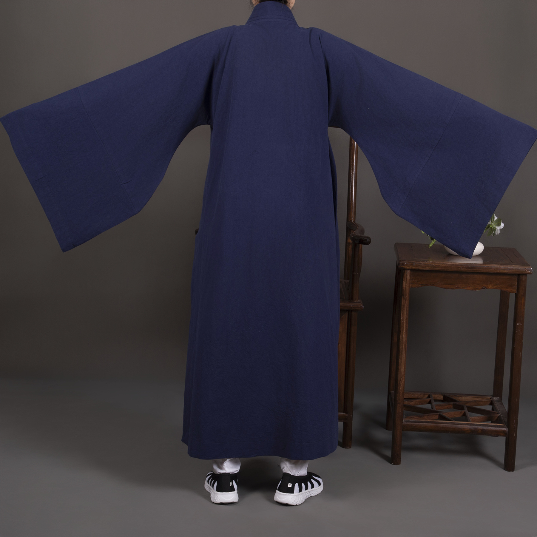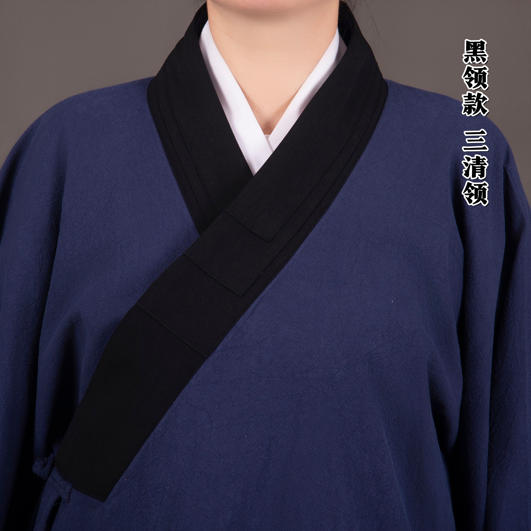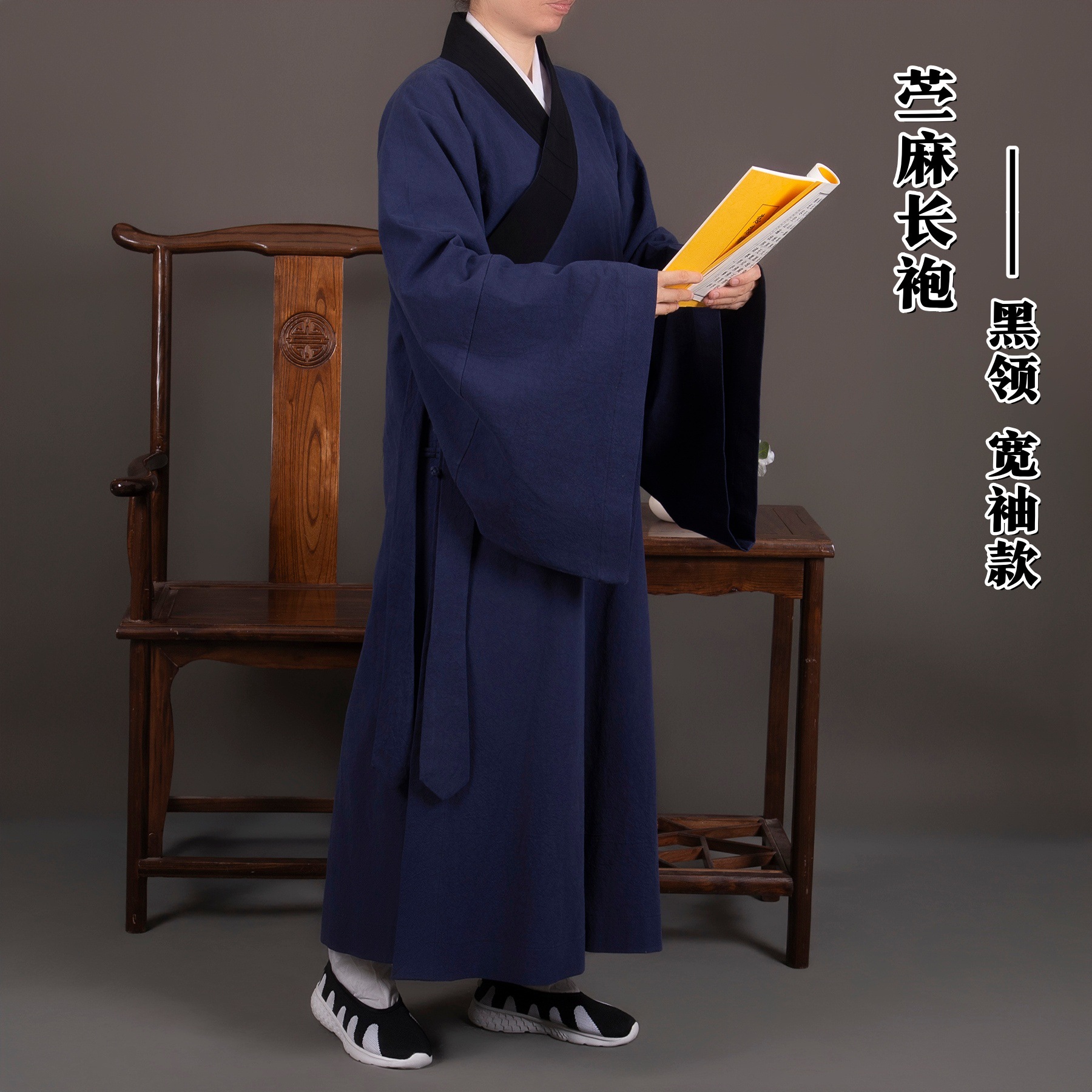 Халат из рами с широкими рукавами, традиционный даосский халат с чёрным воротником, трёхясный колокол, халат с наклонным воротником