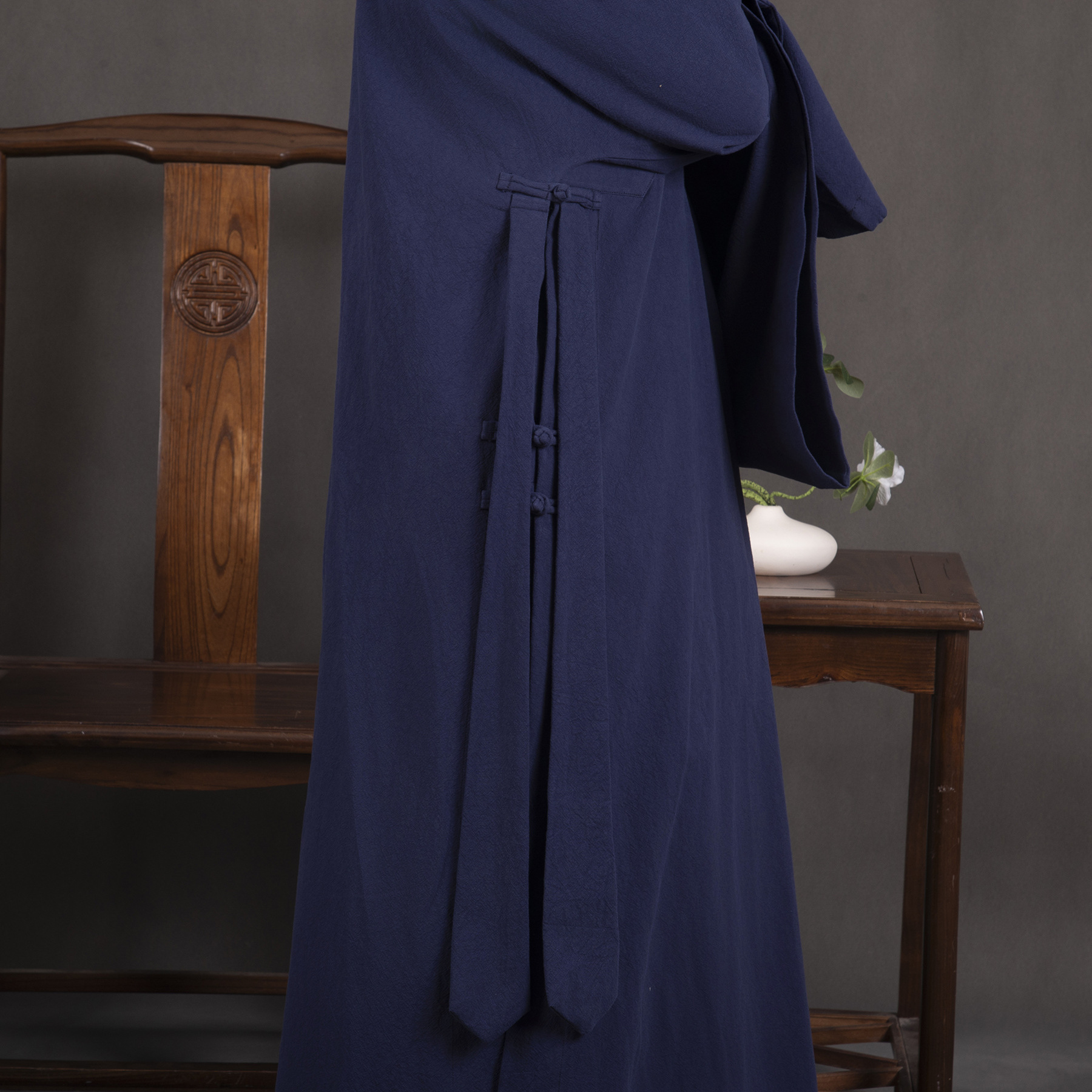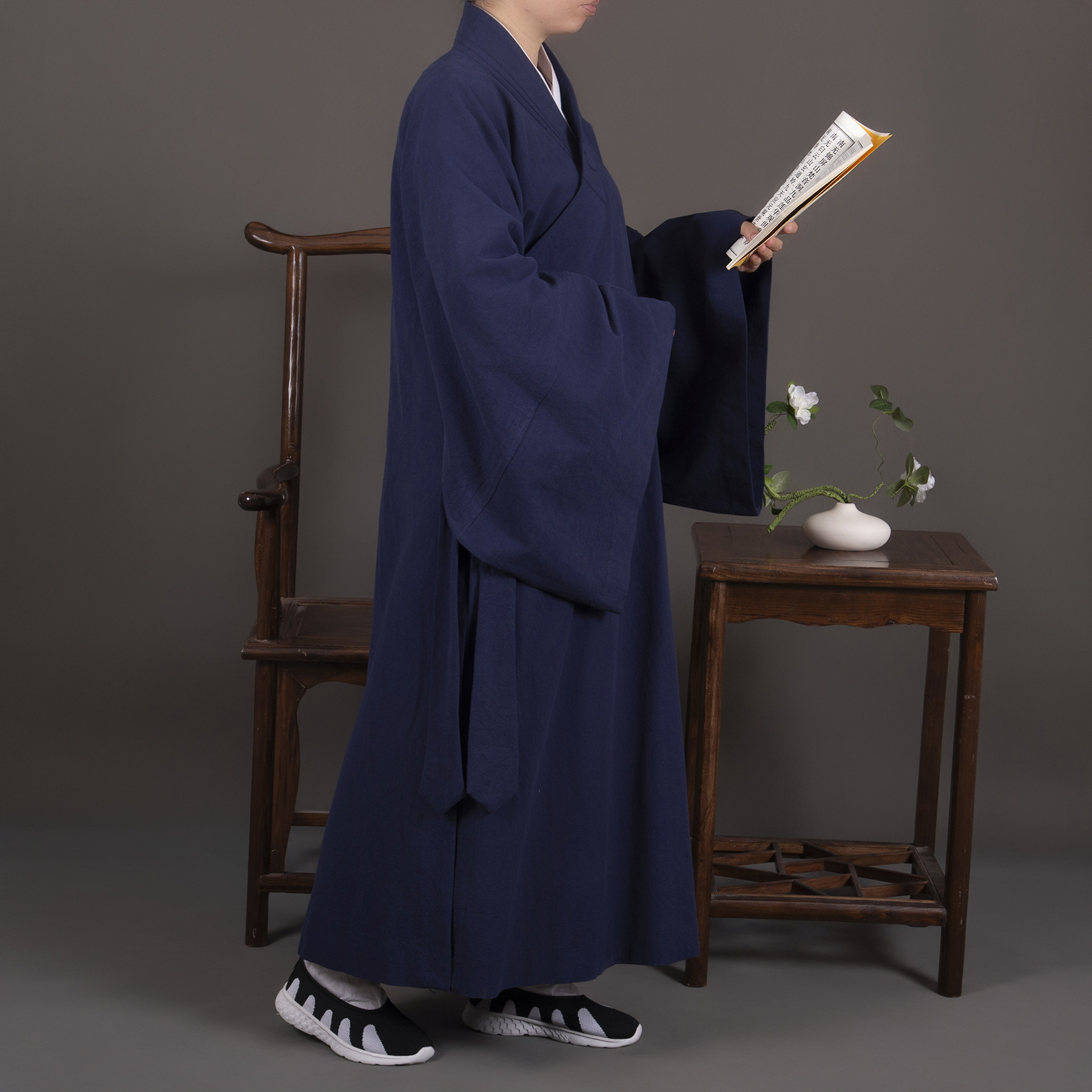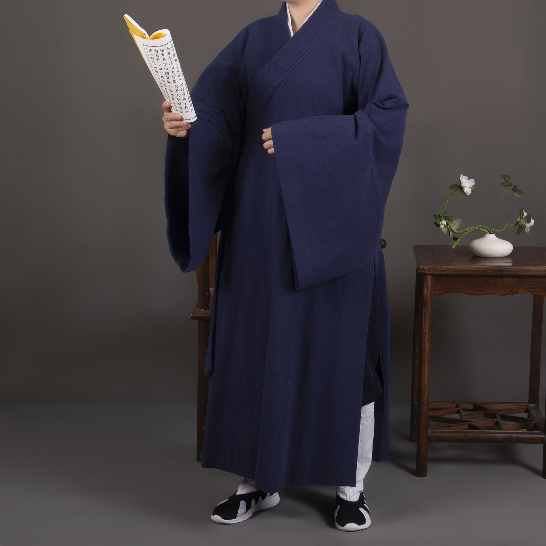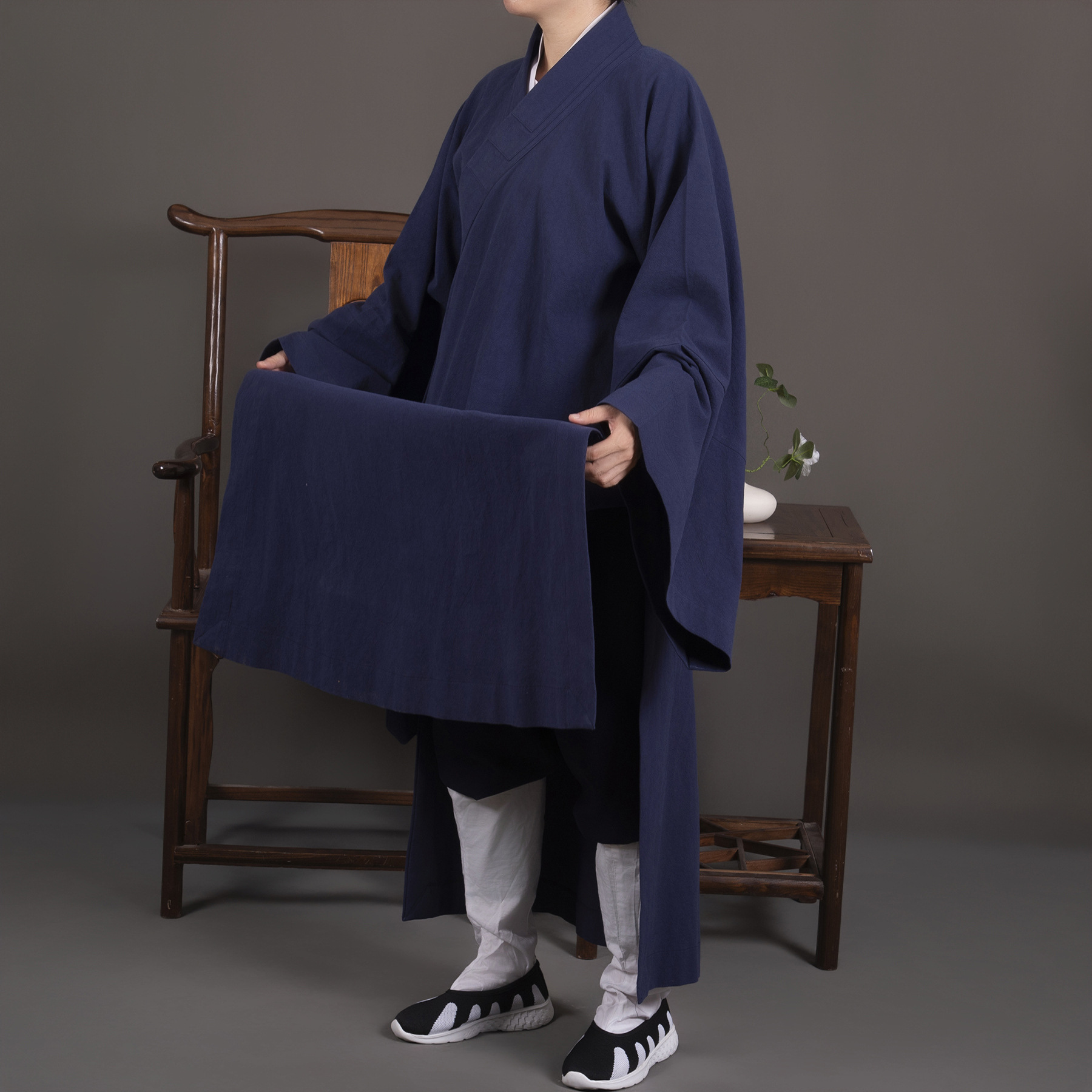 Халат из рами с широкими рукавами, традиционный даосский халат с чёрным воротником, трёхясный колокол, халат с наклонным воротником