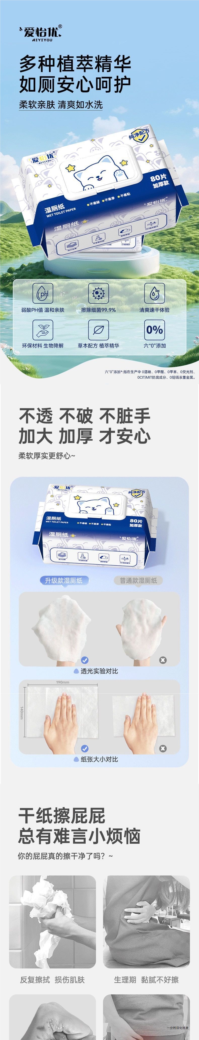 Влажные туалетные салфетки медицинского класса Aiyiyou, большая упаковка 80 нажатий, семейный размер, женские влажные салфетки, можно смывать в унитаз