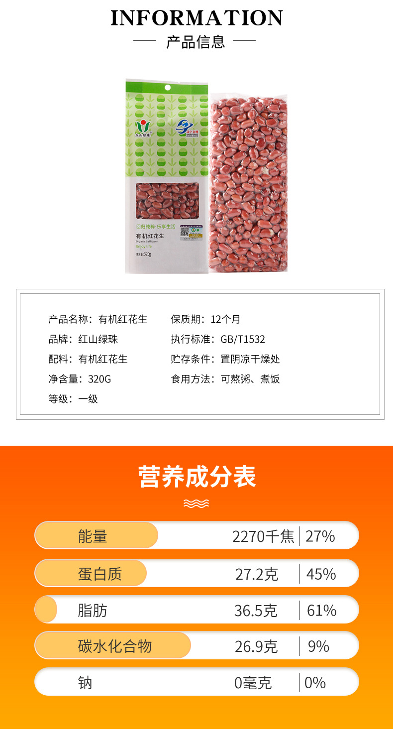 Номер товара Hongshan green pearl organic peanuts 320g