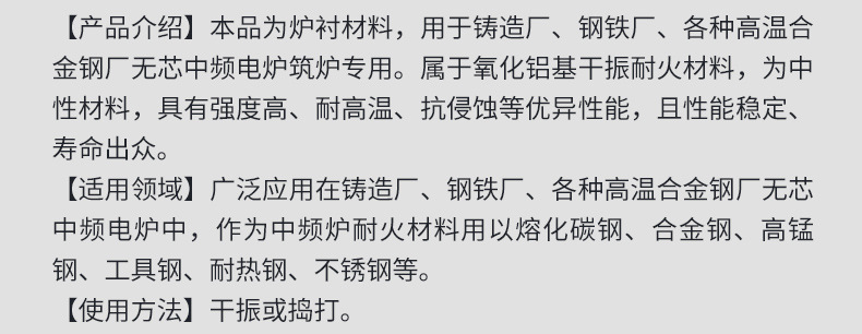 Нейтральная сухая огнеупорная облицовка, корундовый трамбовочный материал, различные высокотемпературные сплавы, строительство без сердечника для среднечастотной электрической печи