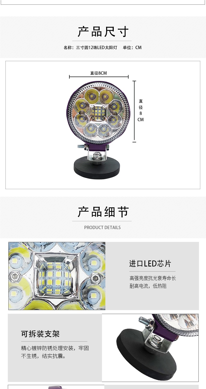 20263 дюйма Круглые Светодиодные Автомобильные Прожекторы, Широкий Угол Обзора, Маленькие Солнечные Огни, Супер Яркие Задние Огни, Водонепроницаемые Боковые Огни, 12В Год Лошади
