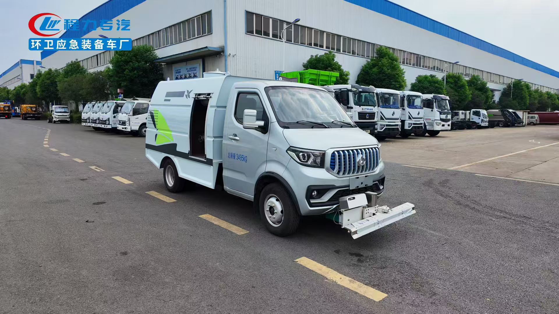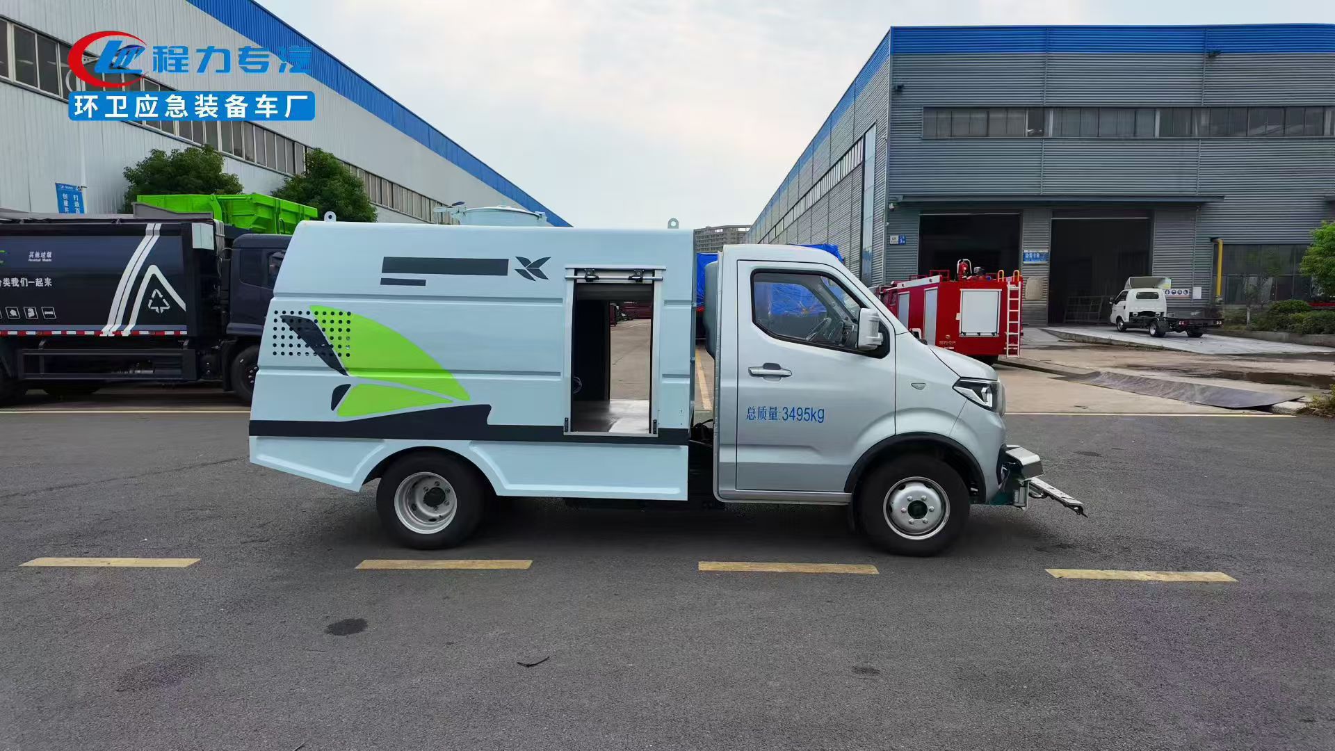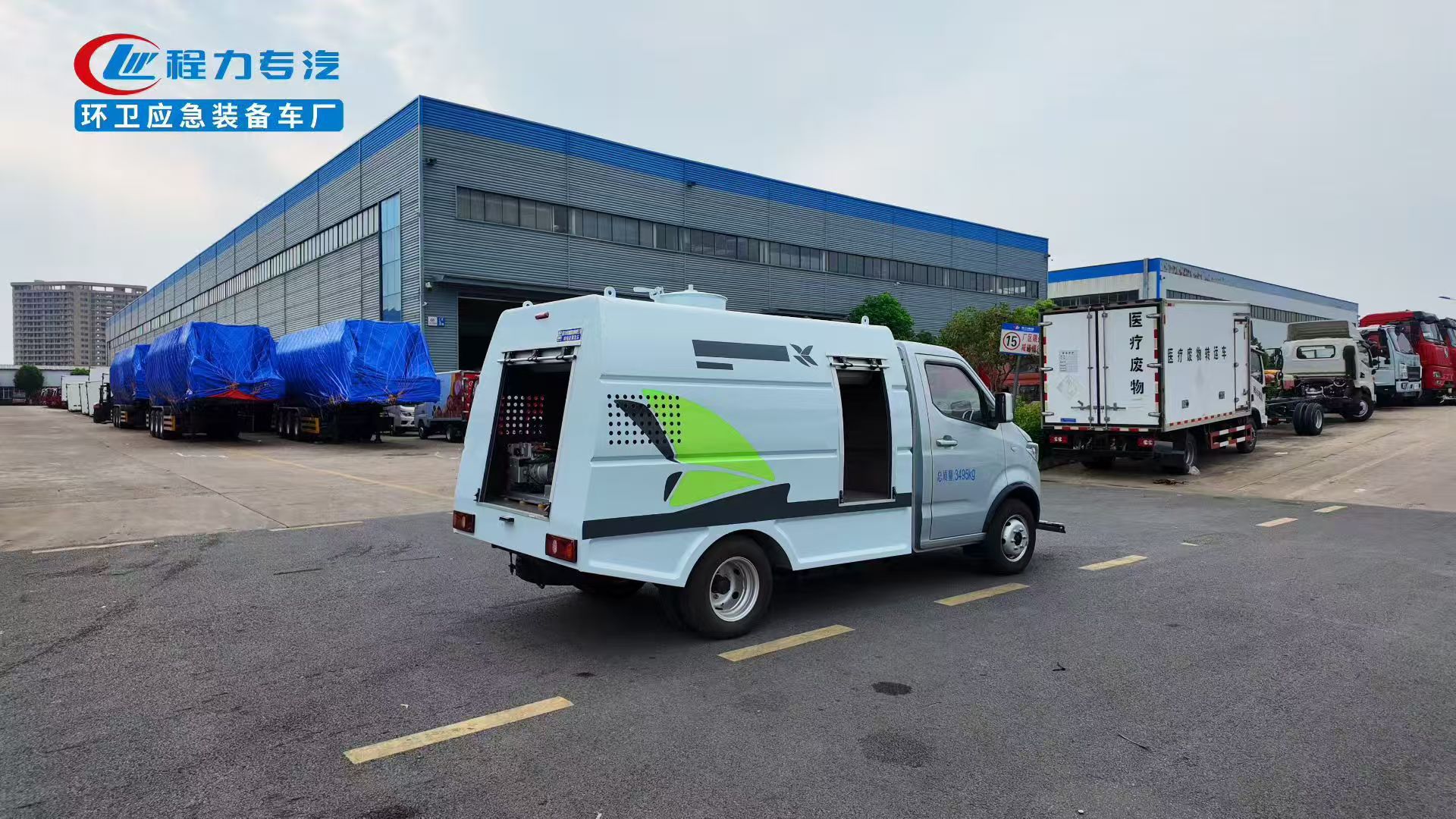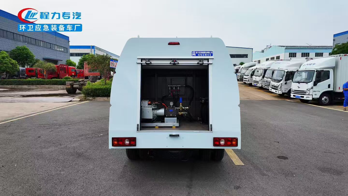 峰值功率85KW. 上装容积1.5立方米, 进口高压泵,18米卷盘冲洗水枪,