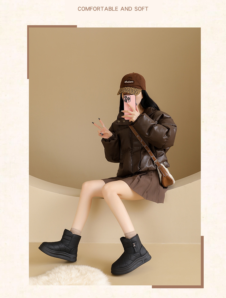 Зимние утепленные снегоступы для женщин 2025 новый утолщенные теплые хлопковые обувь, толстосоленные укороченные сапоги, повседневные обувь из двух хлопков для женщин