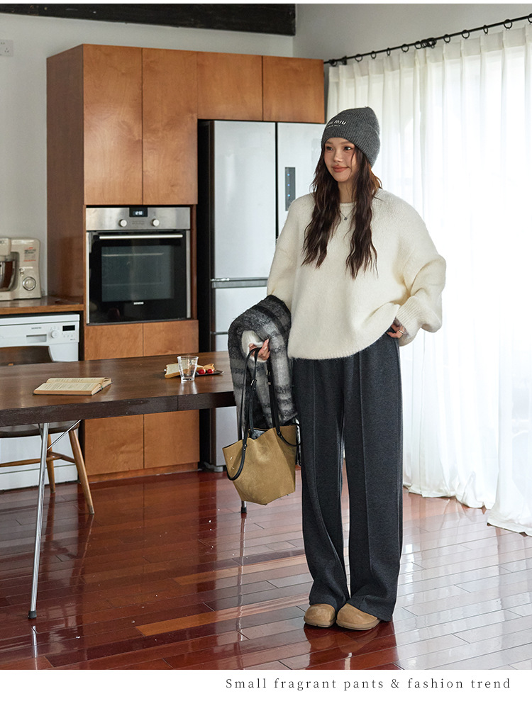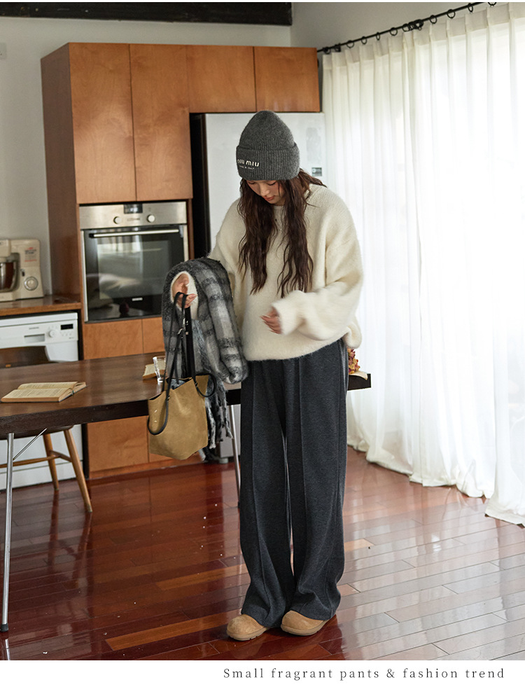 Широкие брюки в елочку для полных женщин, толстые, мягкие и восковые, простые прямые брюки с завязкой, высокие корейские повседневные брюки