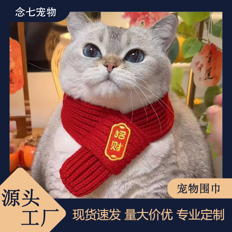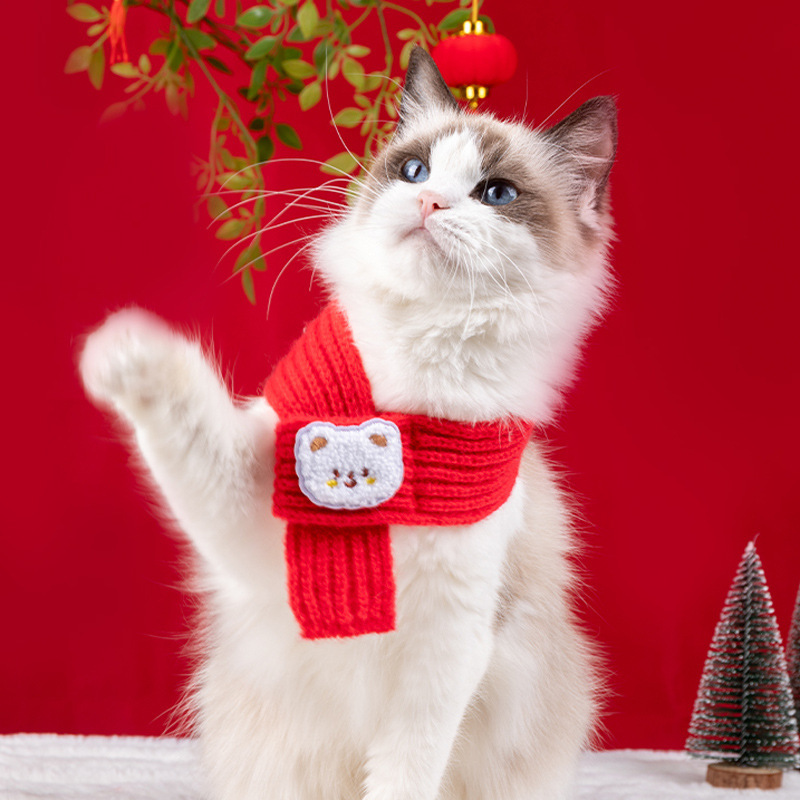 Шарф для кошек и собак, новогодние аксессуары для домашних животных, красный вязаный шарф для щенков, теплый и милый
