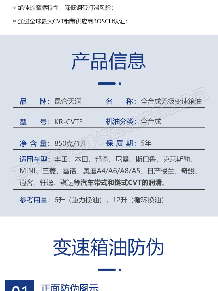 Полностью синтетическое масло для бесступенчатой трансмиссии Kunlun Tianrun Kr-Cvtf