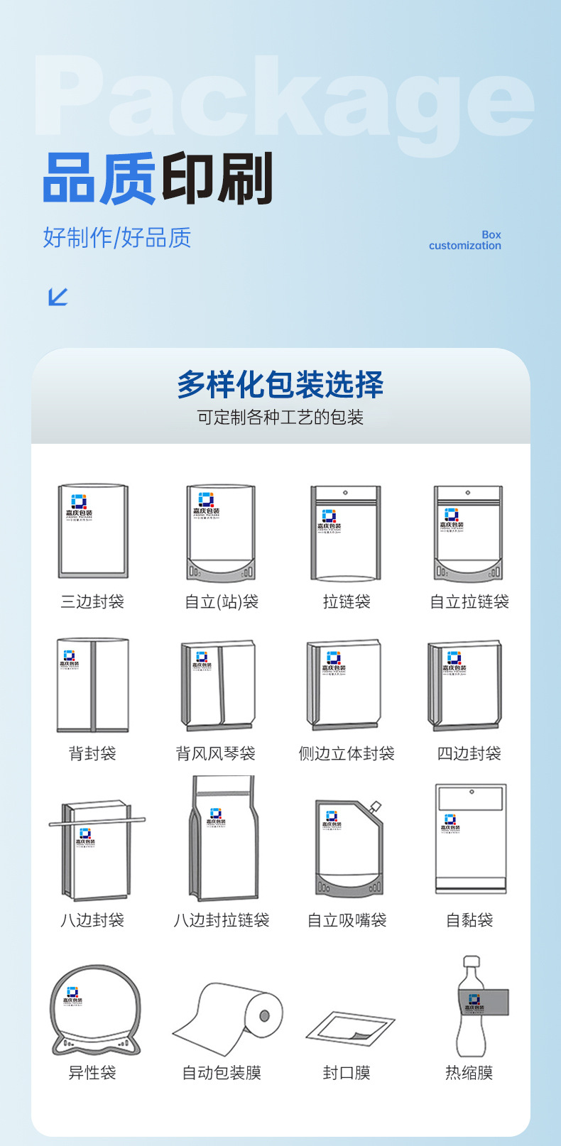 Модель Customized middle-sealed bags, customized eight-side sealed stand-up bags, customized three-side sealed bags, customized zipper bags, ziplock bags, stand-up bags, aluminum foil bags, customized packaging bags, accordion bags