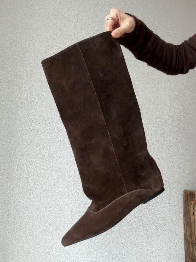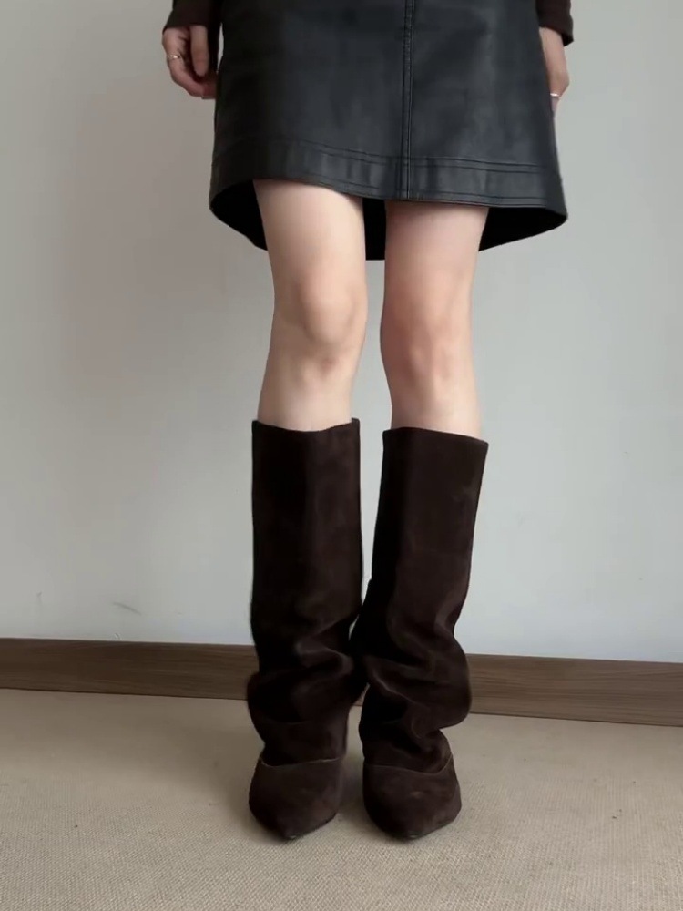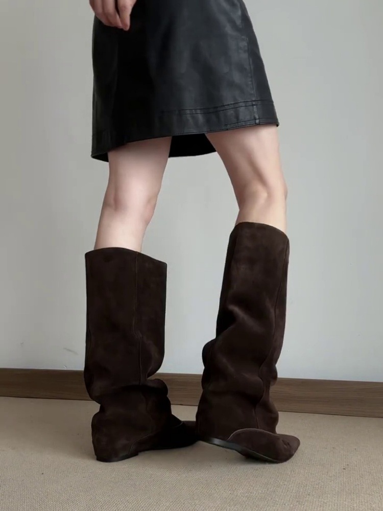Женские ретро ботинки до колена, универсальные, 2025 новый элегантный стиль, утягивающий силуэт, высокие ботинки из овчины