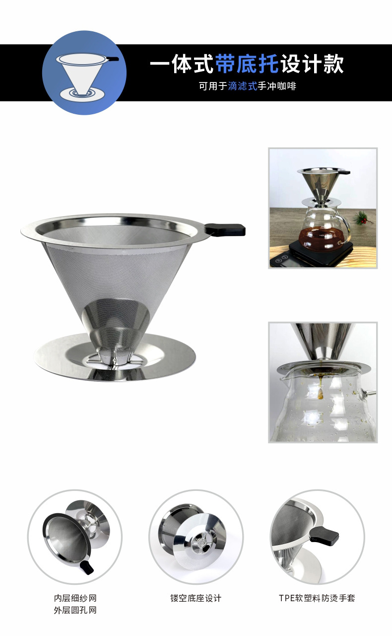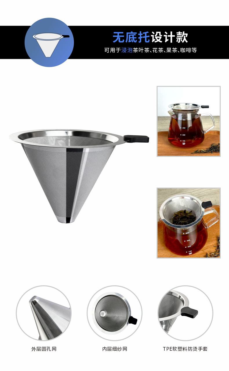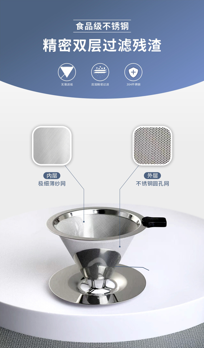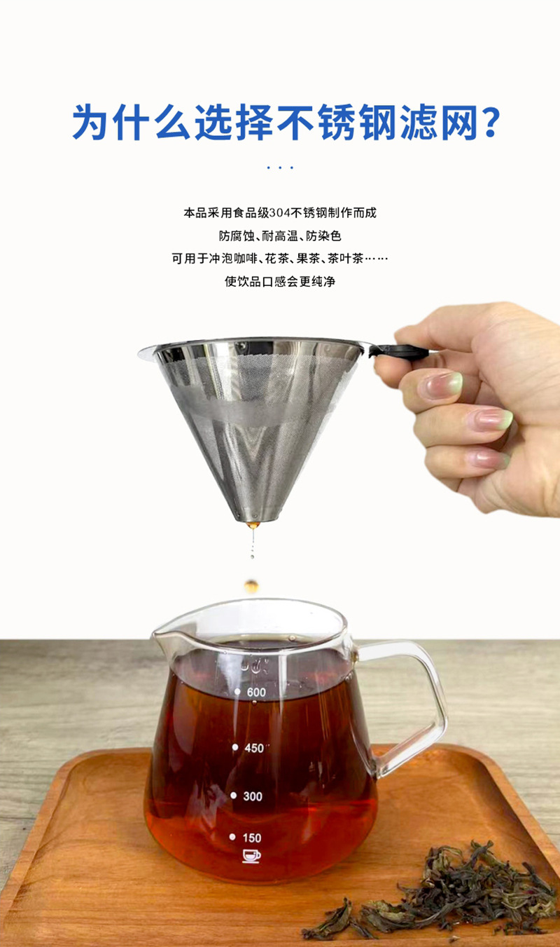 Фильтр для ручного заваривания кофе, фильтр из нержавеющей стали 304, без фильтрации, капельный воронка, двухслойный фильтр для чая