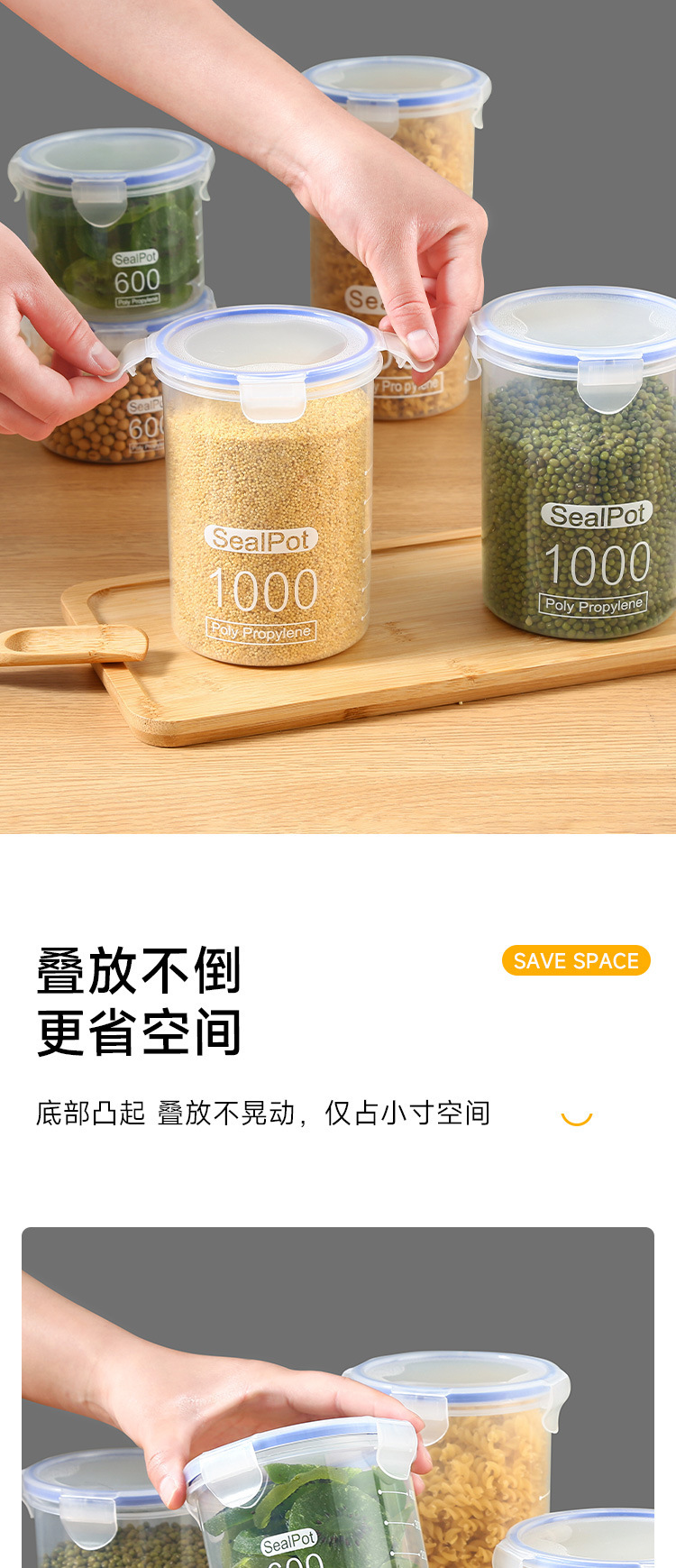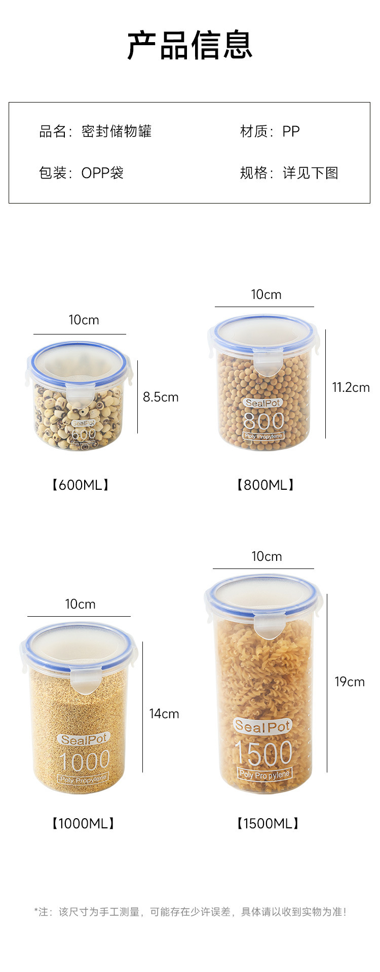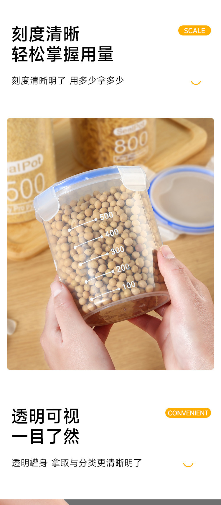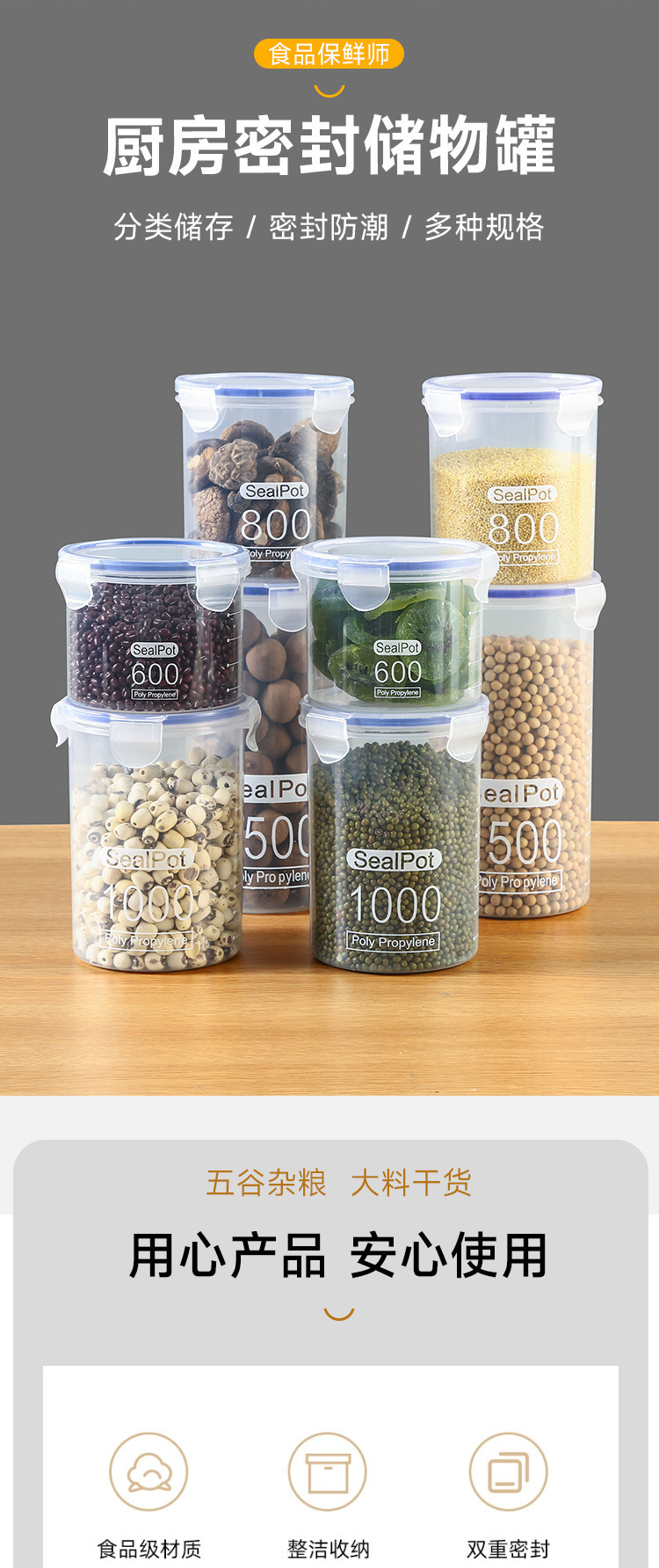Толстая герметичная банка для продуктов Household food-grade pet storage jars, airtight containers, plastic storage bottles, kitchen bottles, coffee jars, tea jars, canning jars, food-grade storage containers, transparent plastic kitchen spice jars