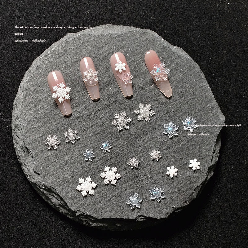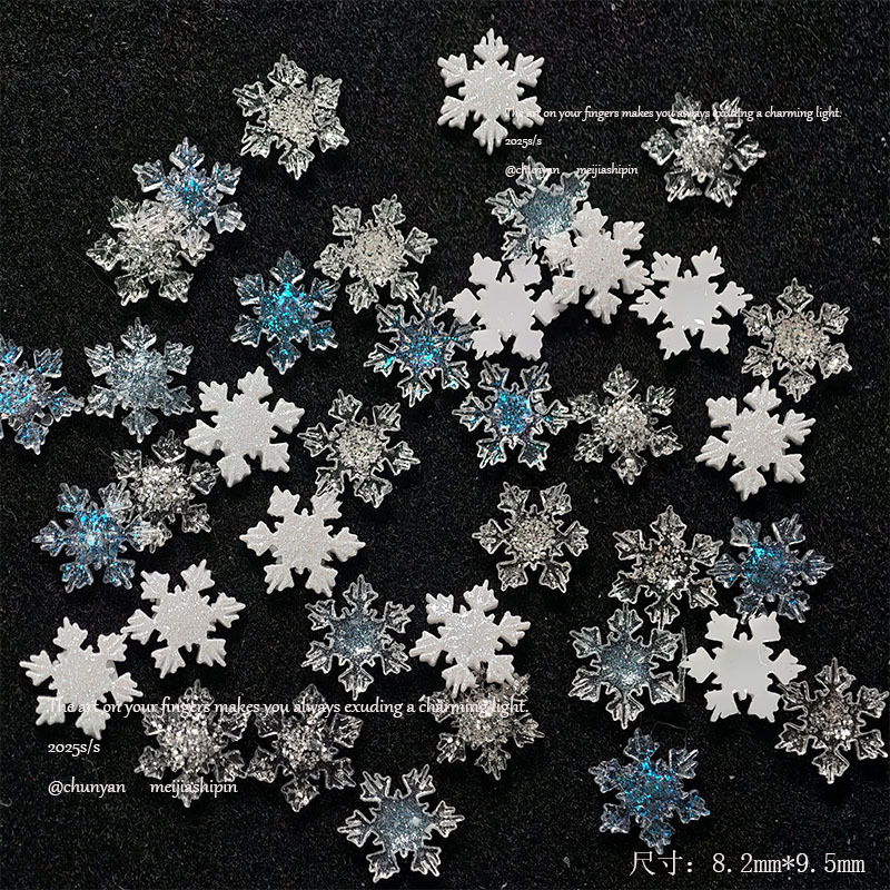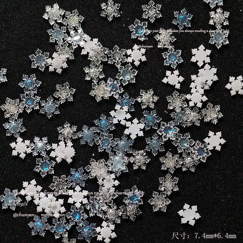 Рождественская серия прозрачные снежинки для ногтей 2025 новый мелкий блестящий порошок пайетки смола декор для ногтей оптом