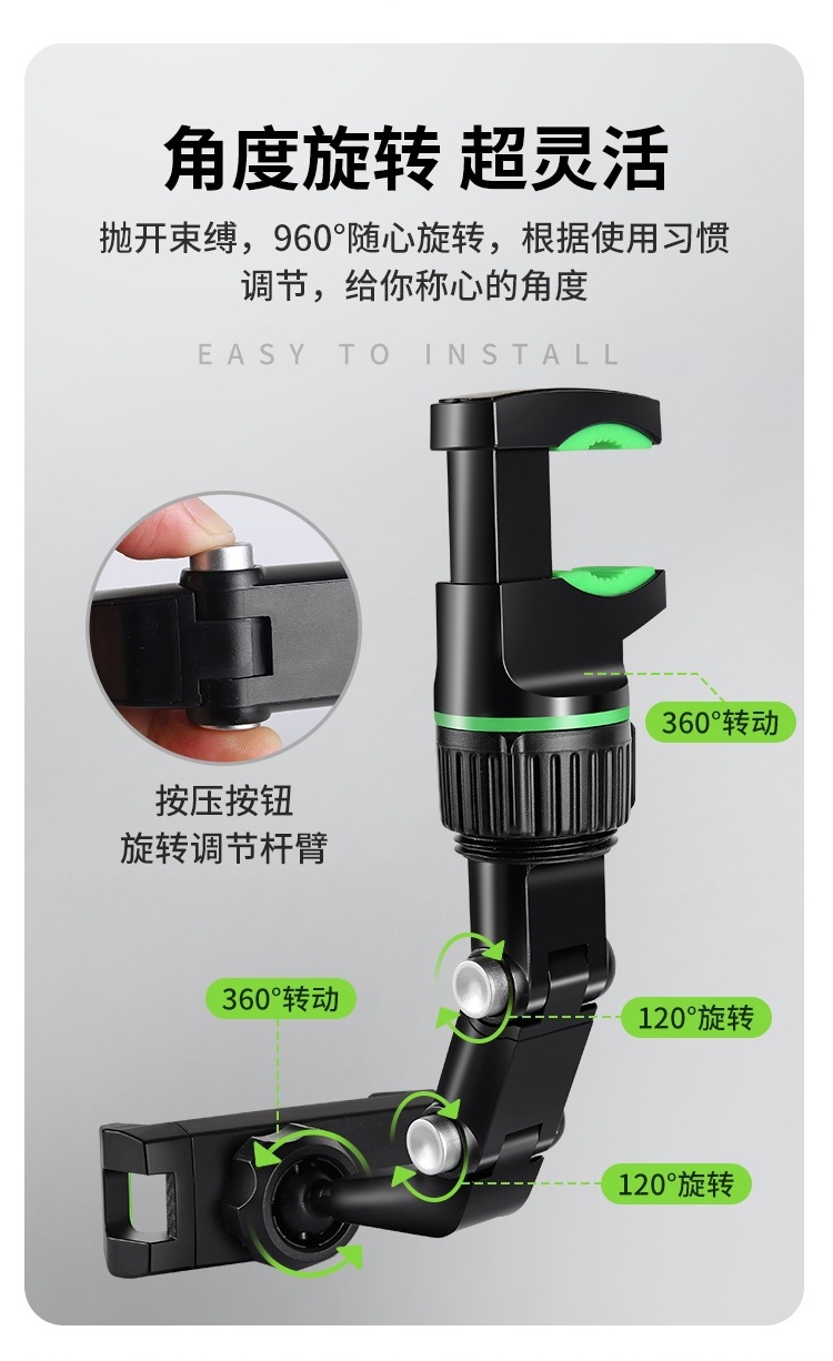 [Новый стиль 2025] Держатель для мобильного телефона в автомобиле, для зеркала заднего вида, вращается в нескольких направлениях