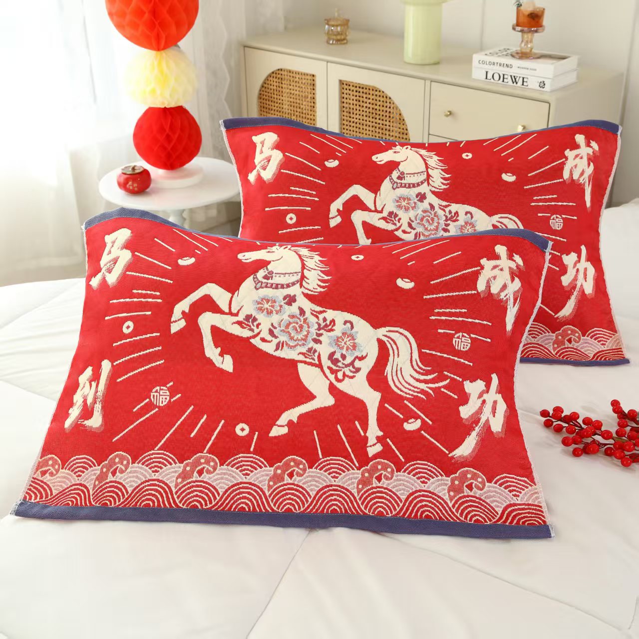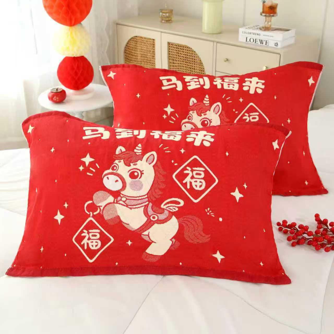 Новое покрывало для подушки из красного газового хлопка с надписью "Фу" на год Лошади, пара праздничных толстых покрывал для подушек, отправка от имени других