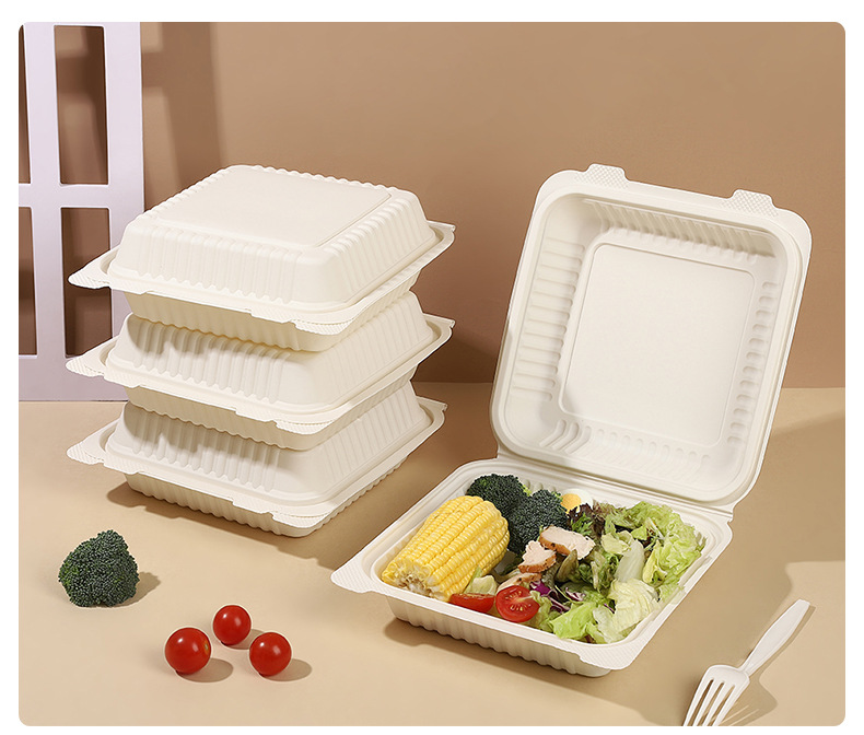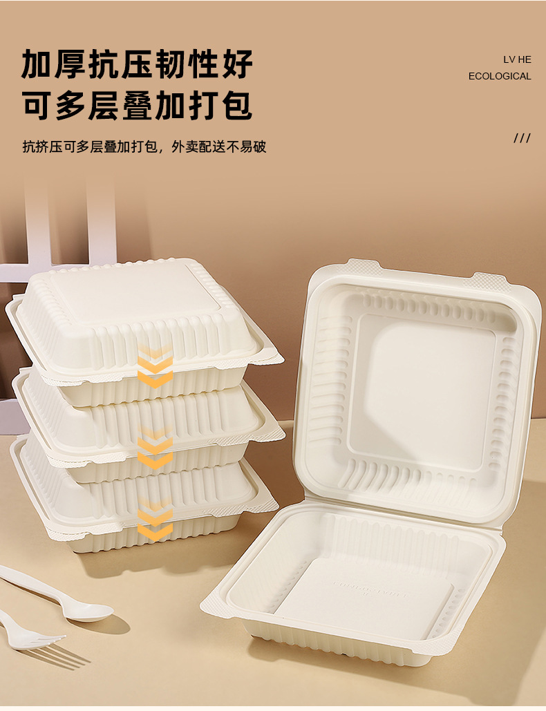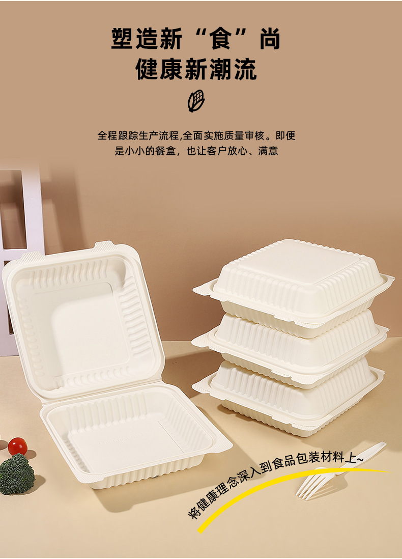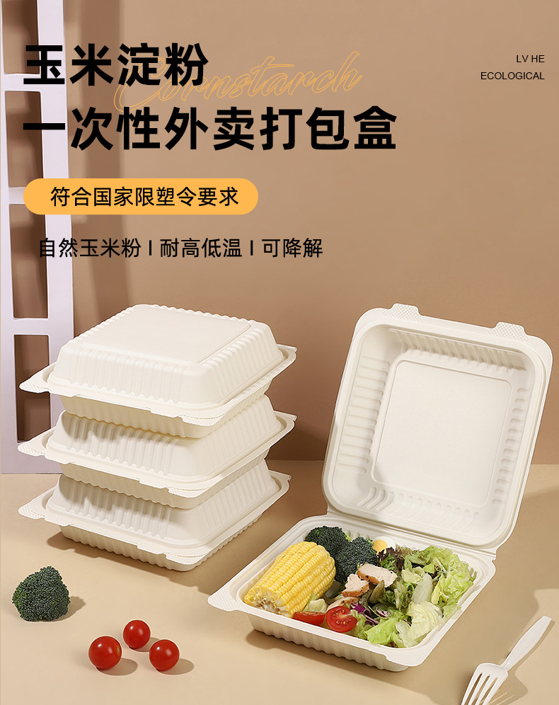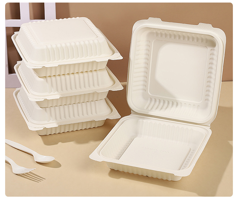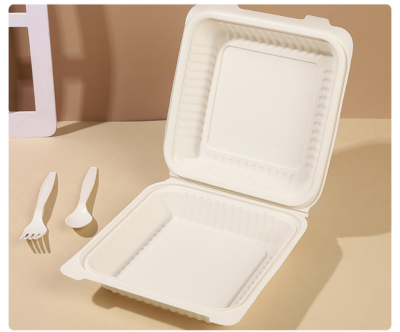 Одноразовая контейнер для обеда с одной и тремя секциями, упаковка из кукурузного крахмала, разлагаемая, экологически чистая, контейнер для обеда с откидной крышкой