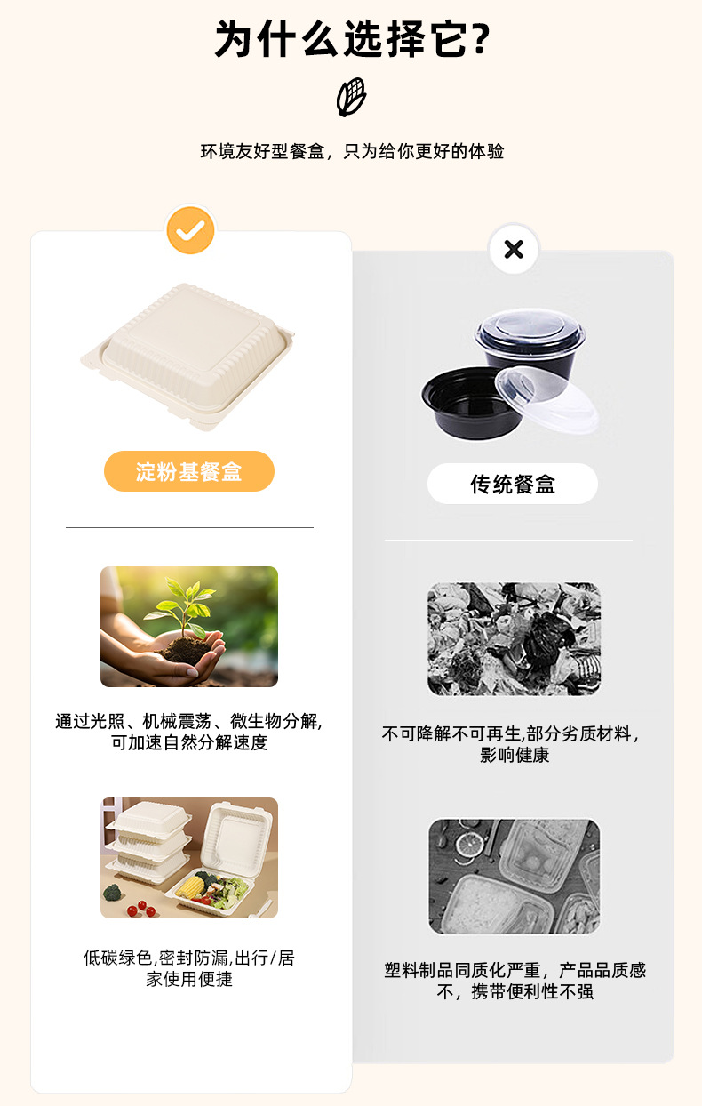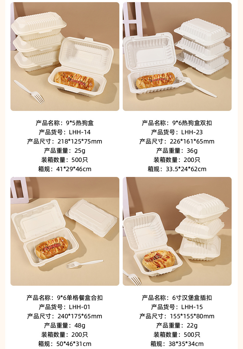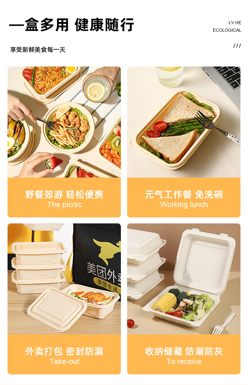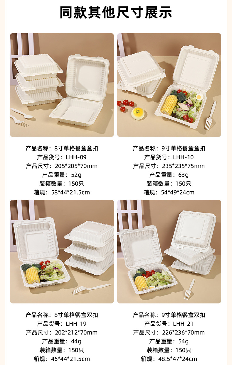 Одноразовая контейнер для обеда с одной и тремя секциями, упаковка из кукурузного крахмала, разлагаемая, экологически чистая, контейнер для обеда с откидной крышкой