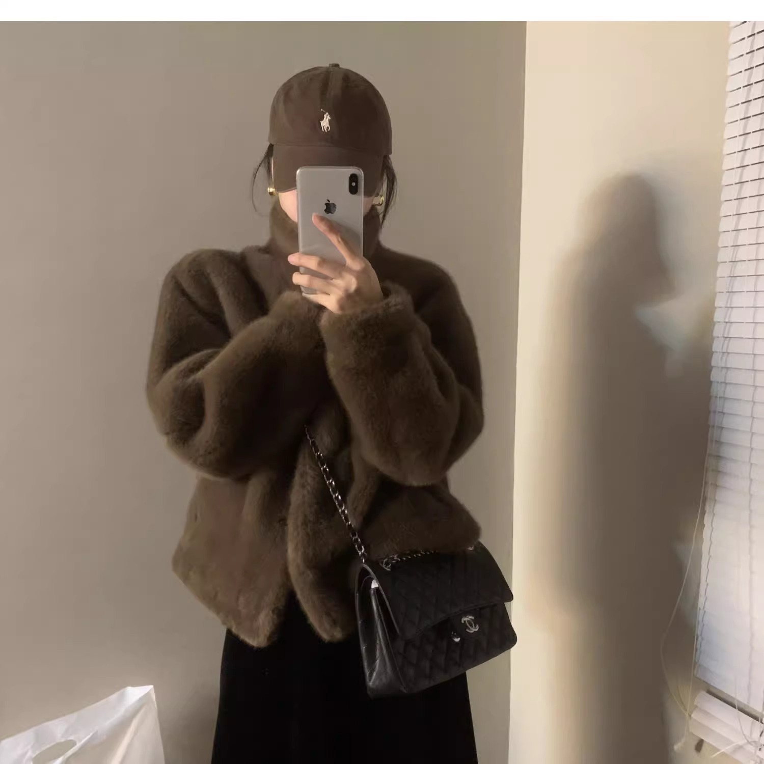 2025 зима молодежный стиль норковое короткое пальто с воротником-стойкой интегрированное норковое плюшевое экологичное пальто для женщин