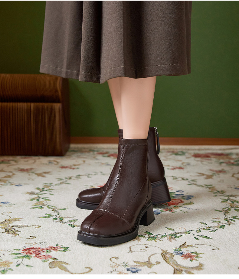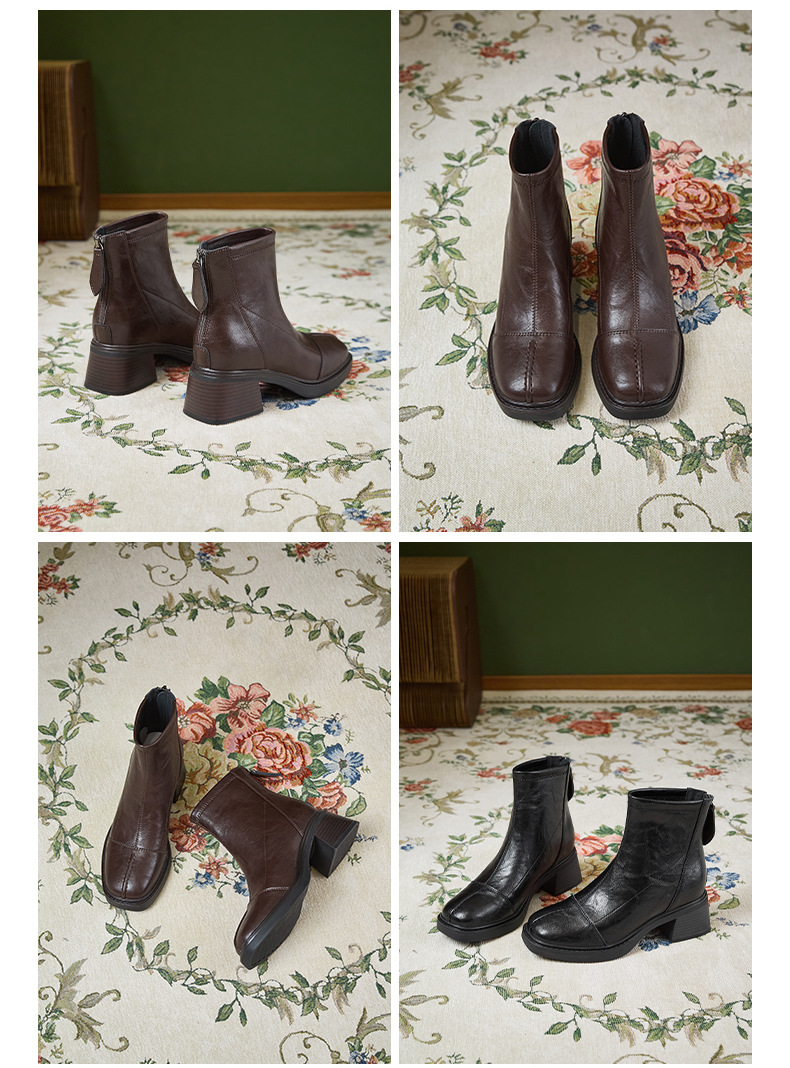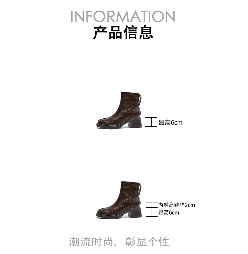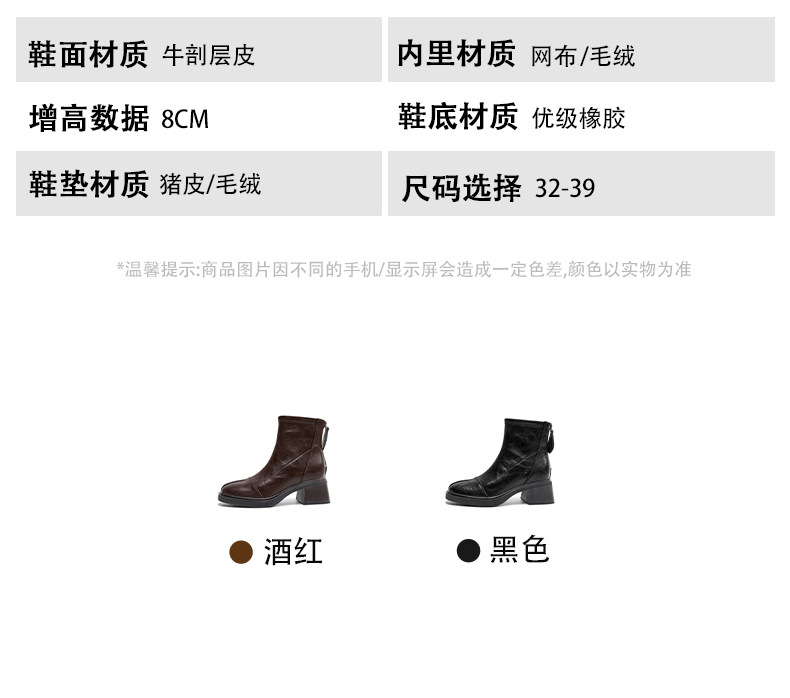 2118 невидимые внутренние ботинки с высотой 8 см квадратный носок толстый каблук короткие ботинки для женщин осень и зима с утеплителем британского стиля винтажные модные ботинки