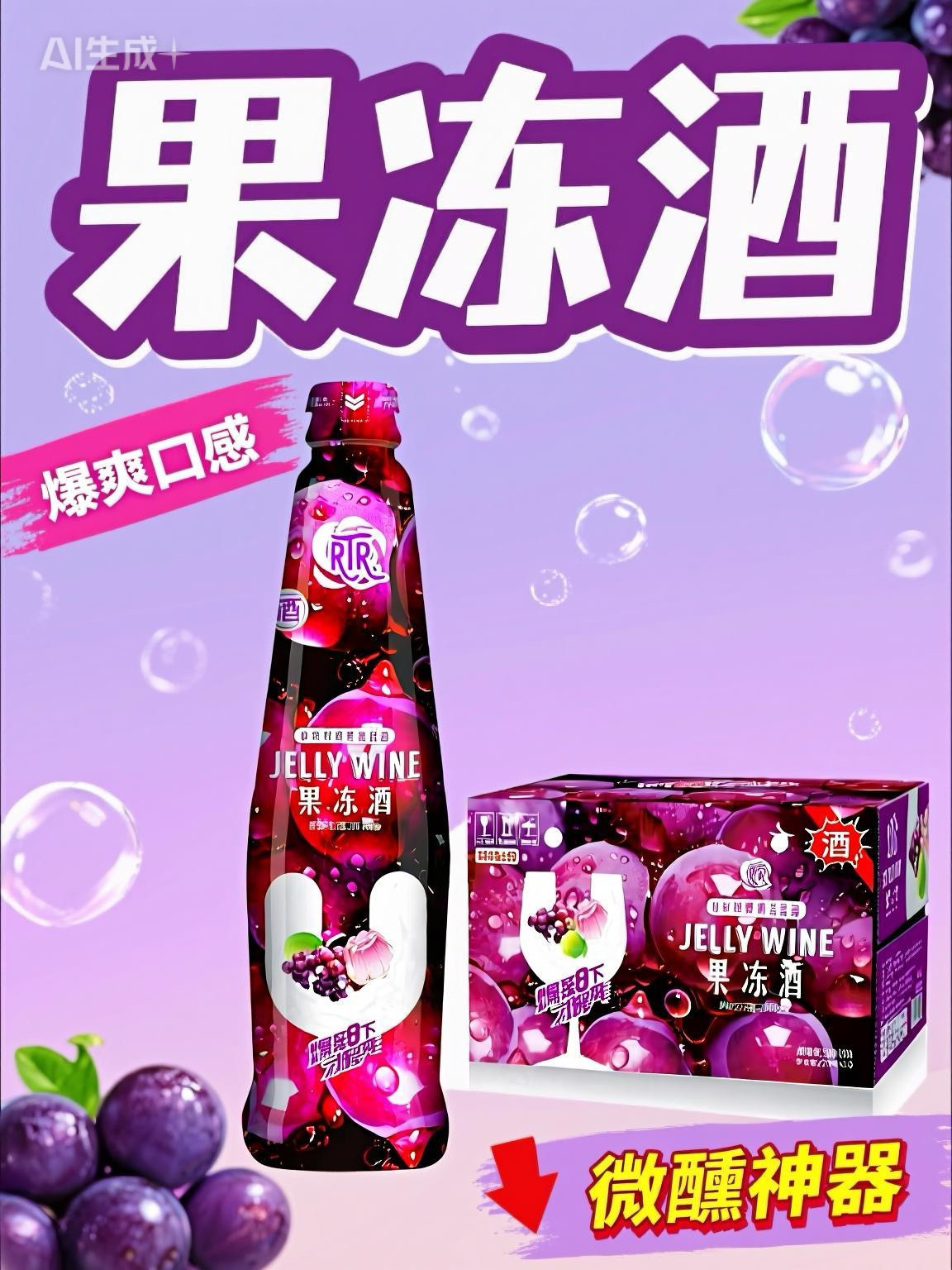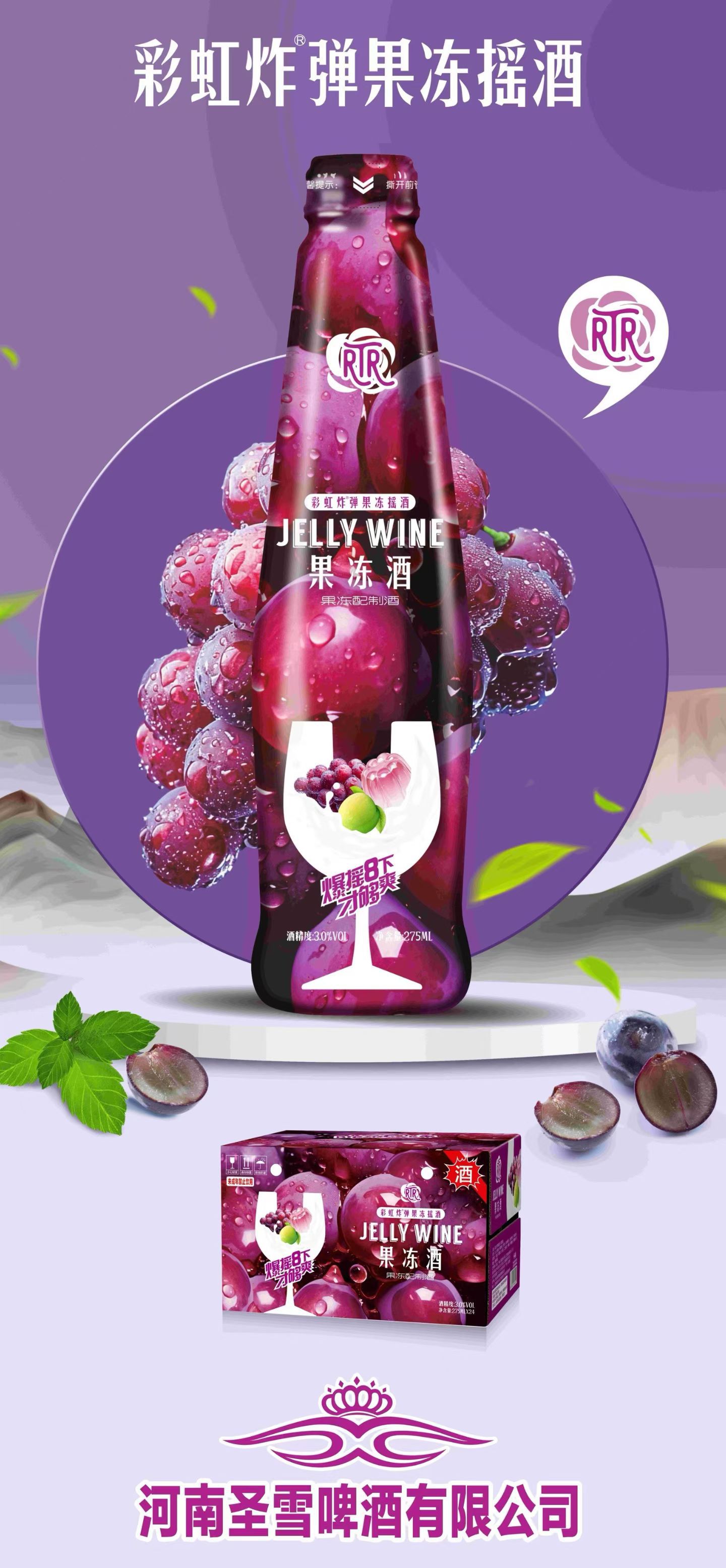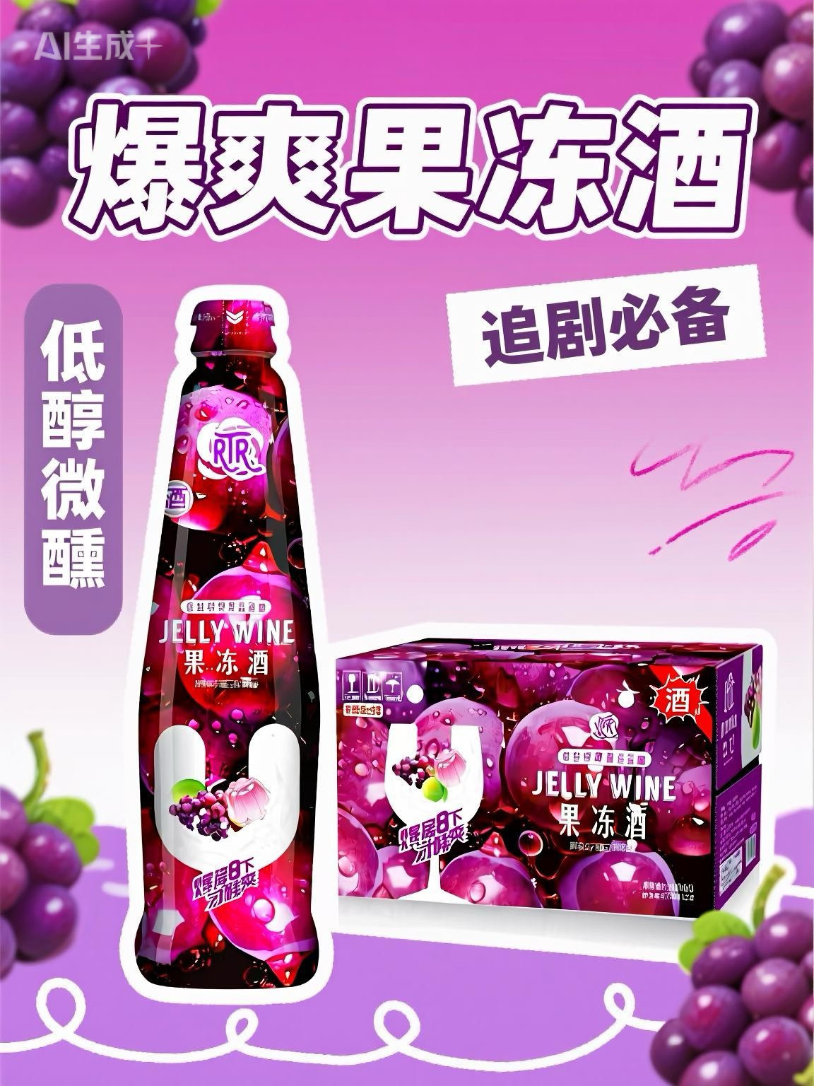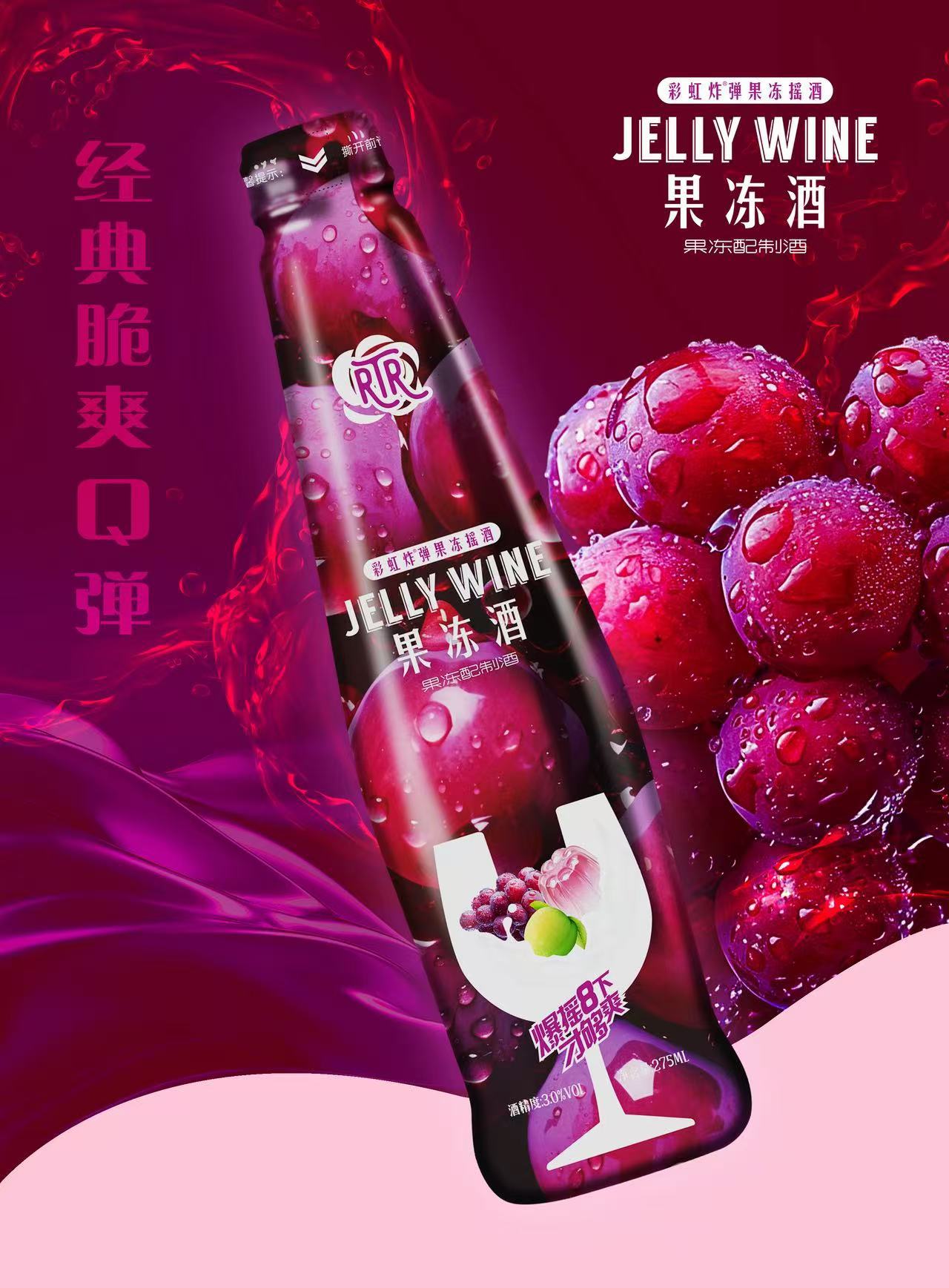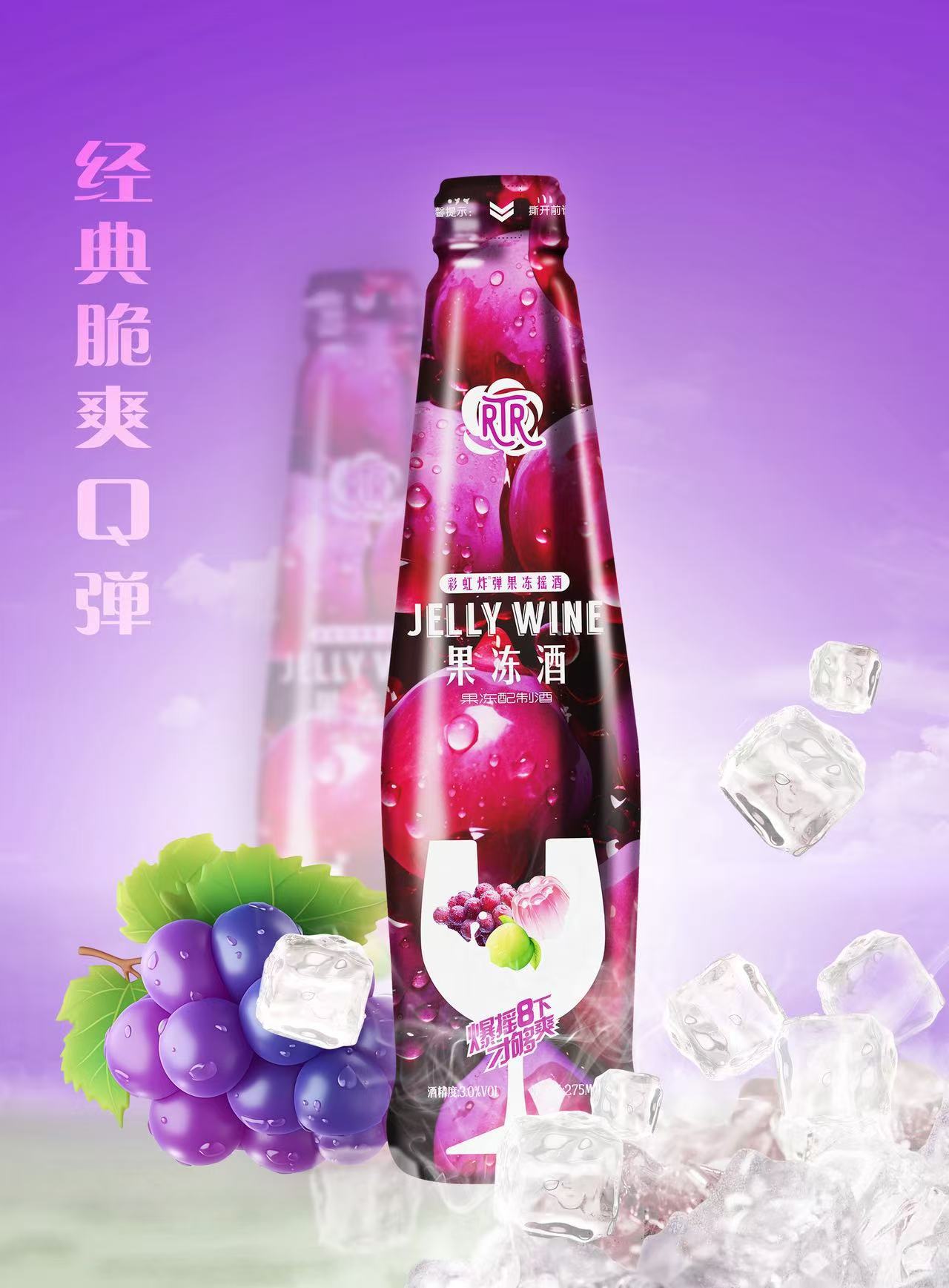 Освежающее желе вино 275мл*24 бутылки, низкий алкоголь, виноградный вкус, полный коробка, оптовая, клубное маленькое пиво