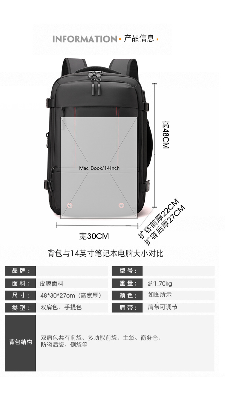 Вакуумный компрессионный рюкзак, универсальная большая емкость, сумка для поездок с разделением на сухое и влажное, рюкзак для посадки и расширяемый
