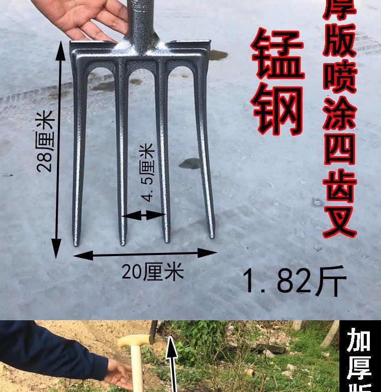Толстая стальная вилка для копки и обработки почвы, манганцевая сталь, полная четырехзубая вилка для копки имбиря, пятизубая вилка для копки лука и чеснока