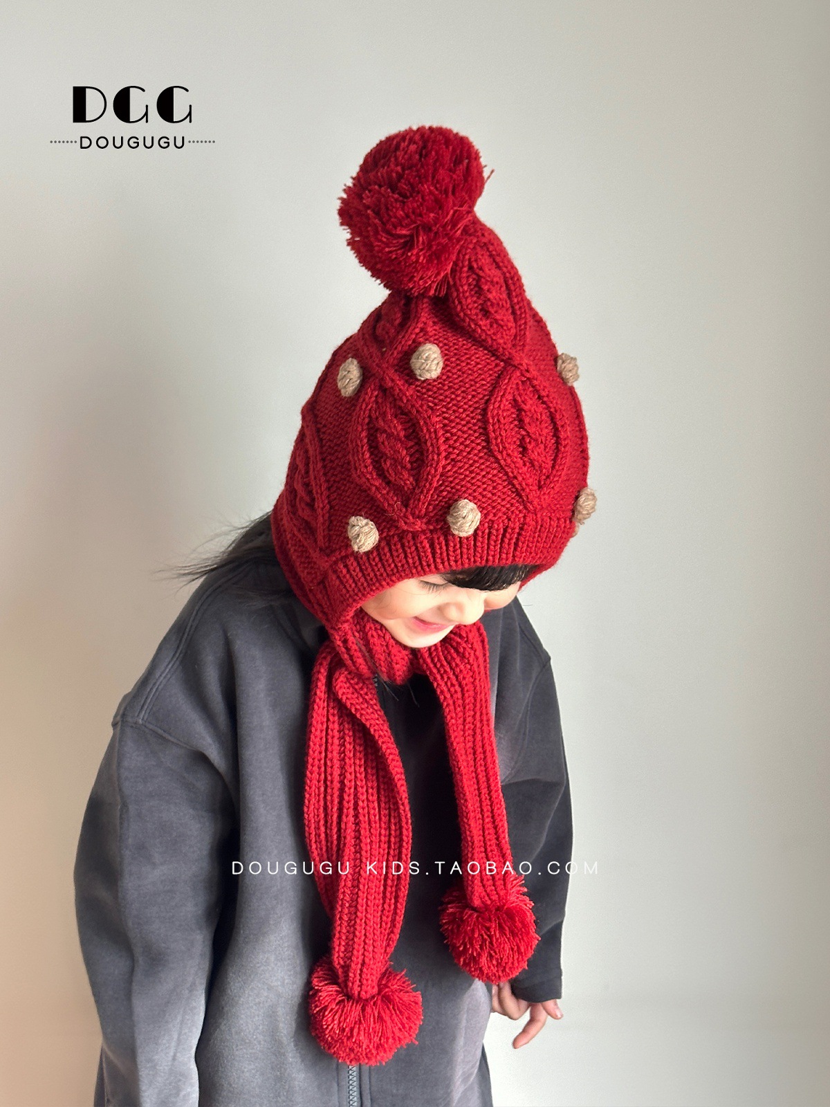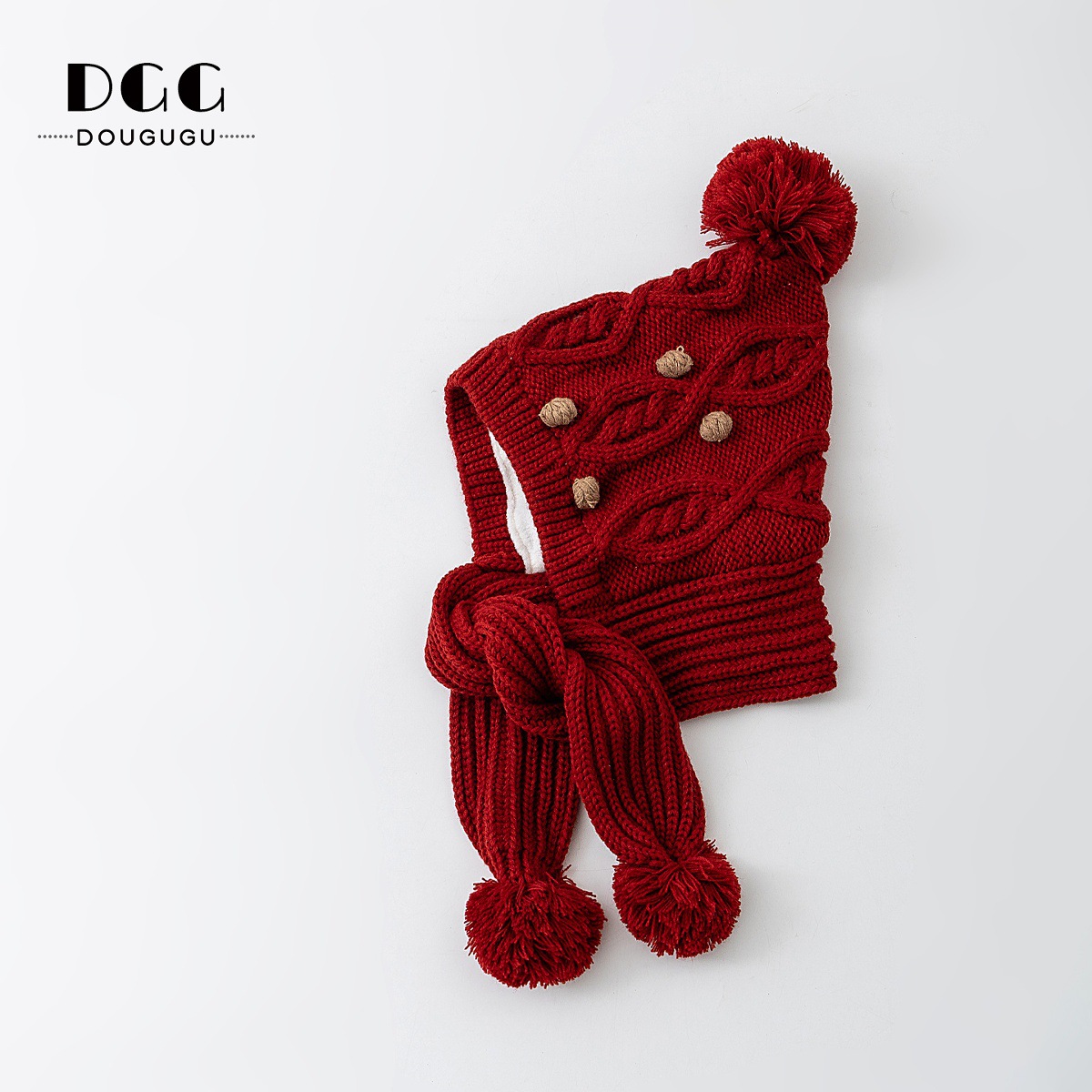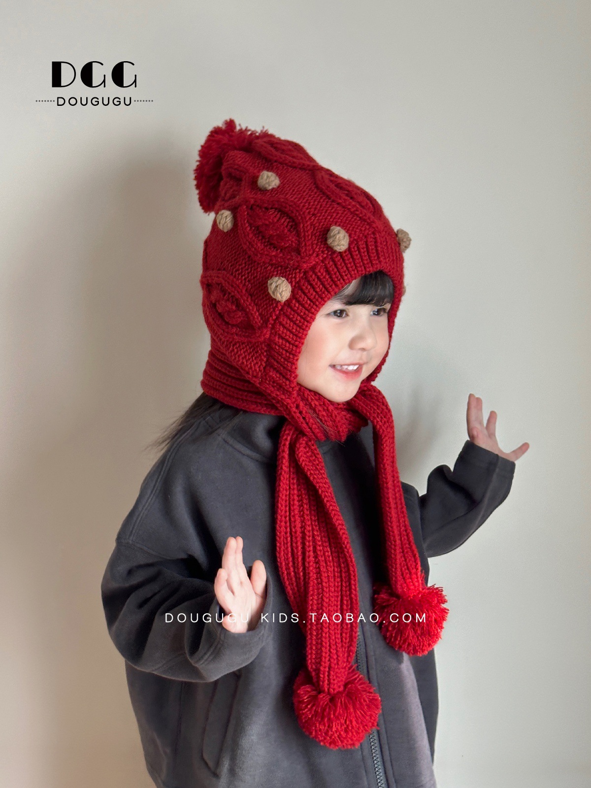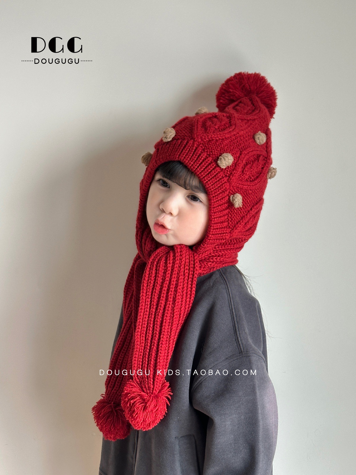 Зимняя вязаная шапка и шарф для детей, утепленная шапка с защитой ушей, корейский стиль, красная шершавая шапка для девочек на Новый год