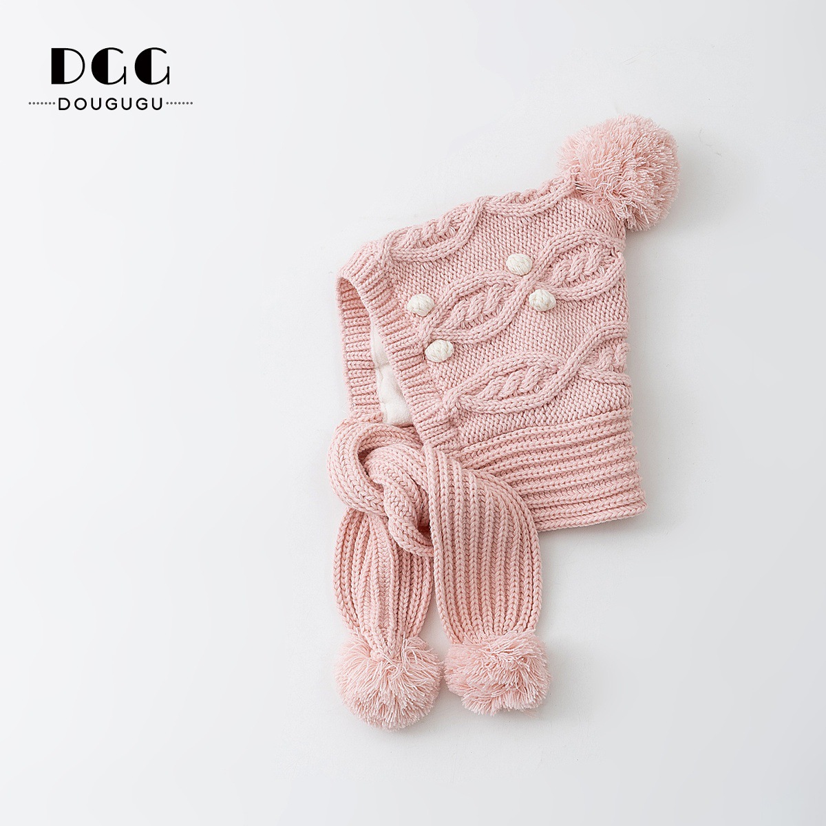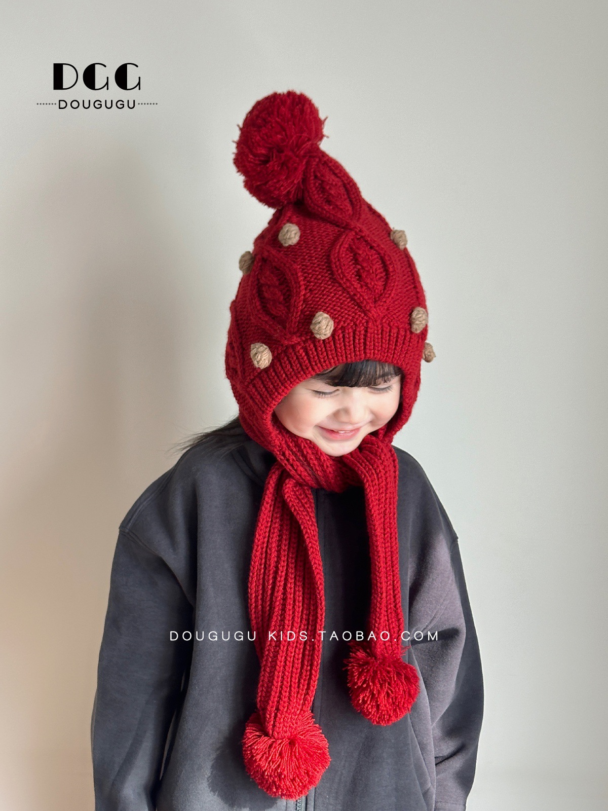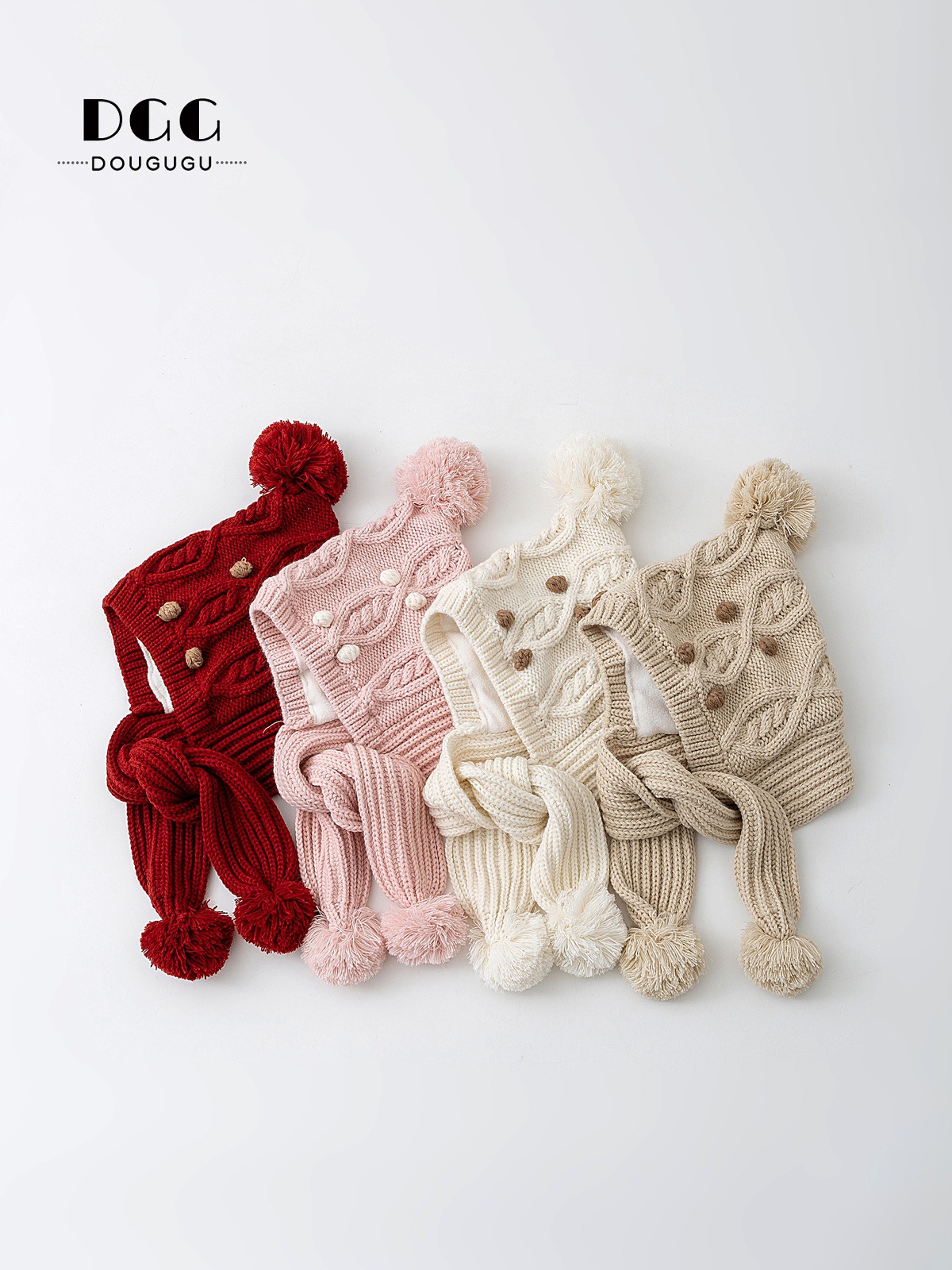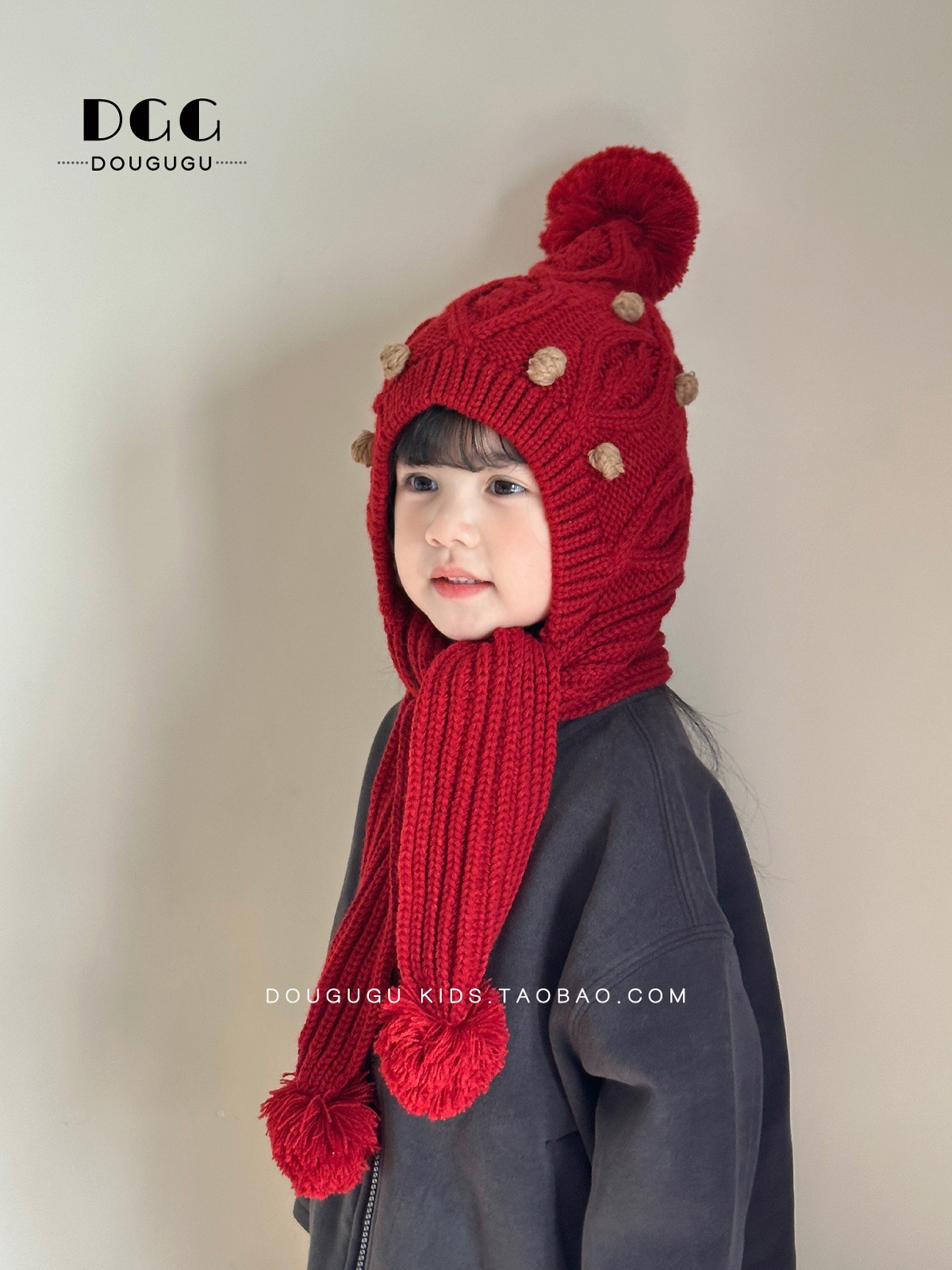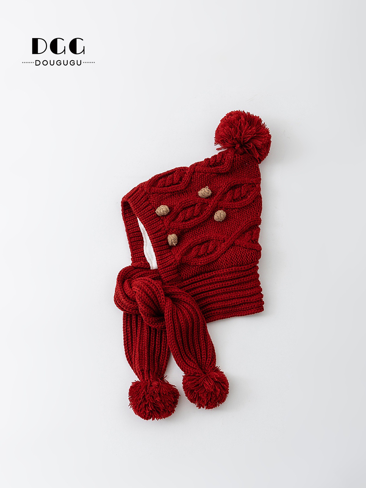 Зимняя вязаная шапка и шарф для детей, утепленная шапка с защитой ушей, корейский стиль, красная шершавая шапка для девочек на Новый год