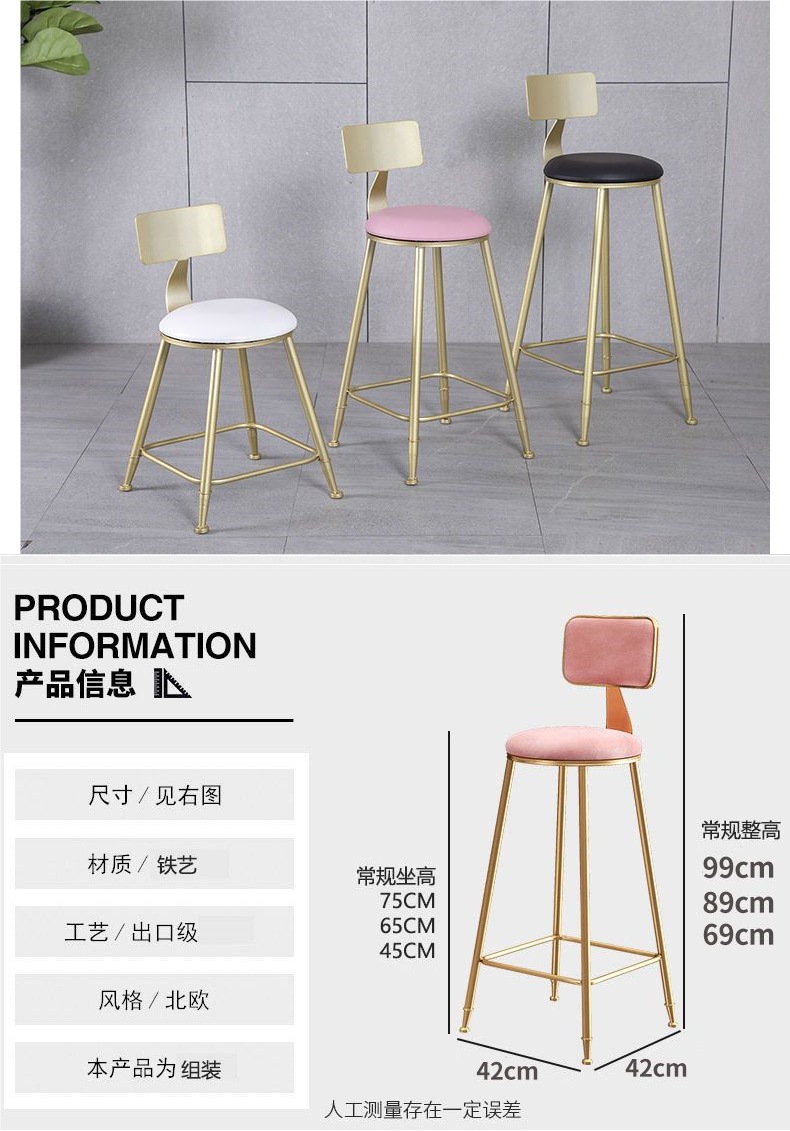 Высокий барный стул, минималистичный легкий роскошный барный стул, круглый барный стул с спинкой для домашнего использования