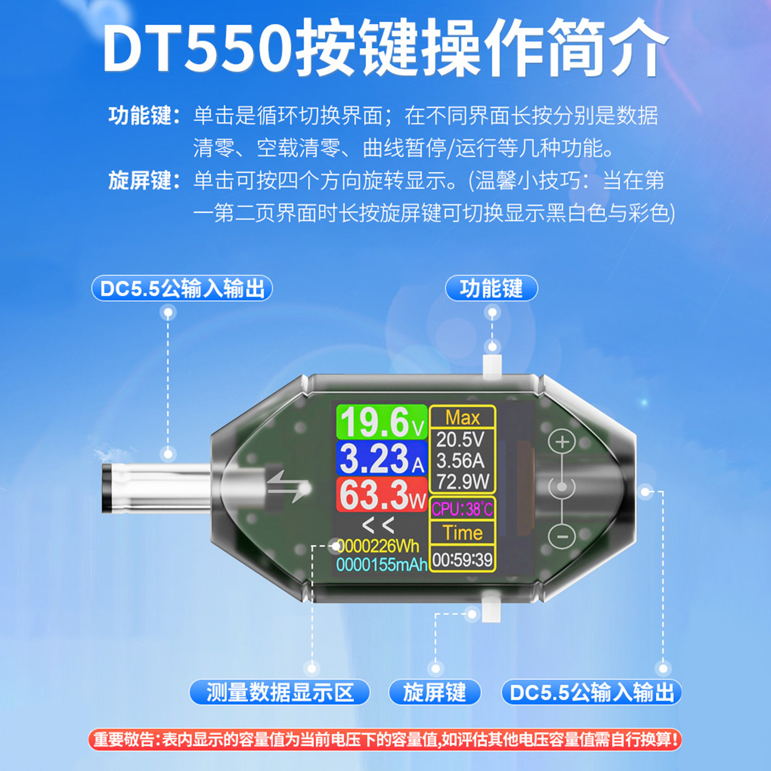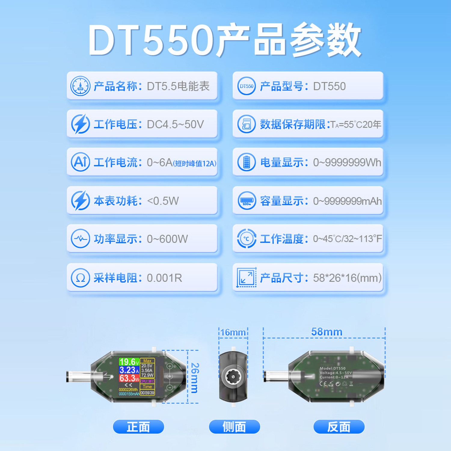 Высокоточный цифровой вольтметр и амперметр Dt550, DC 4.5-50V, 0-6A