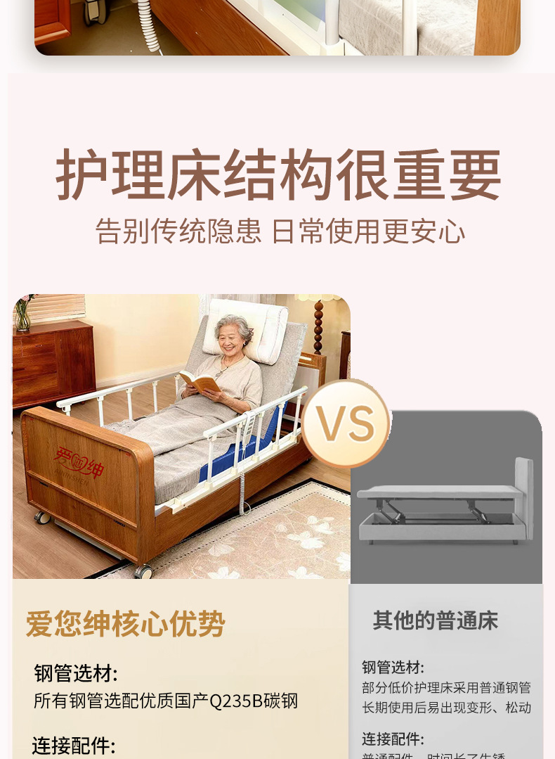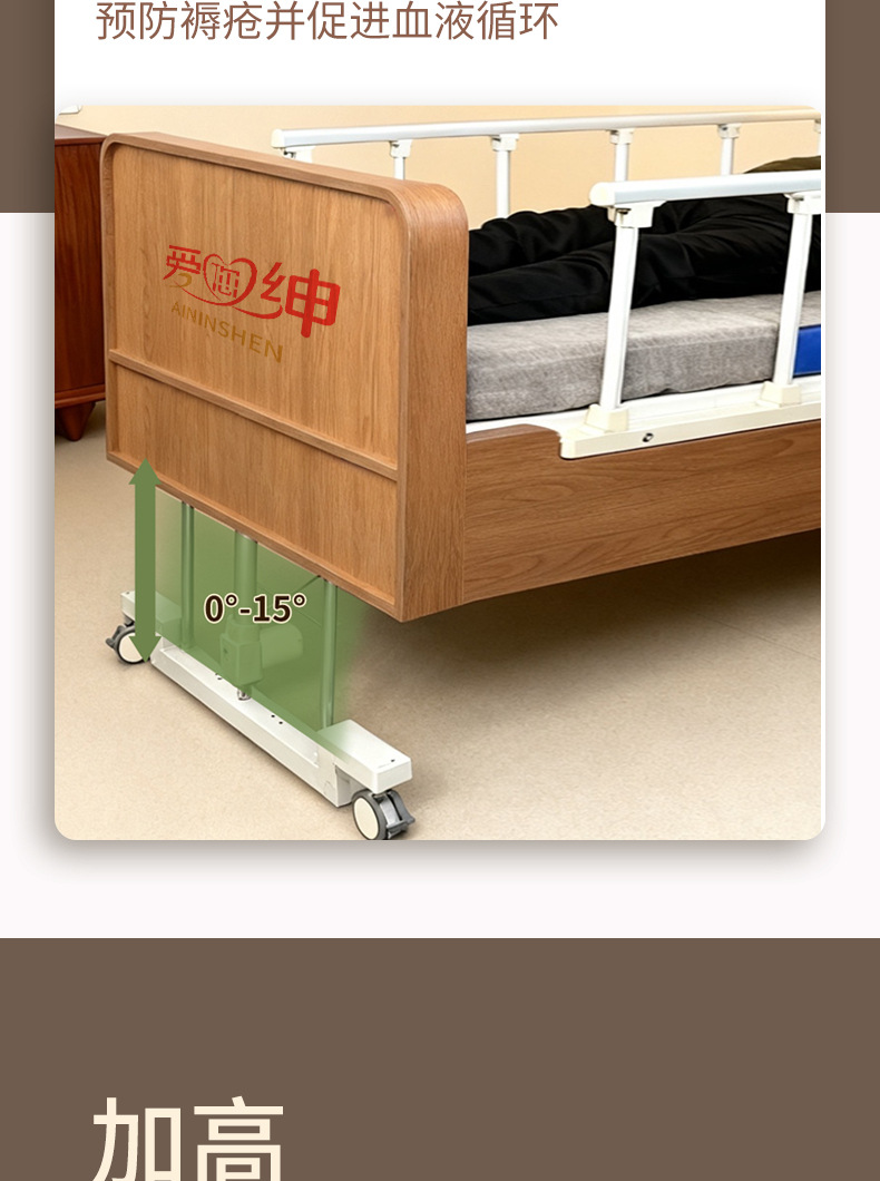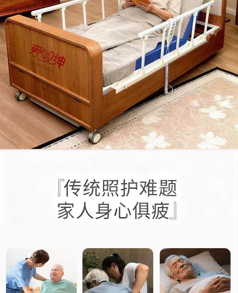 Электрическая медсестринская кровать Aiyushen подходит для домов престарелых, с функциями подъема спины и ног пожилого человека, автоматическим подъемом и сделана из массива дерева, подходит для пожилых