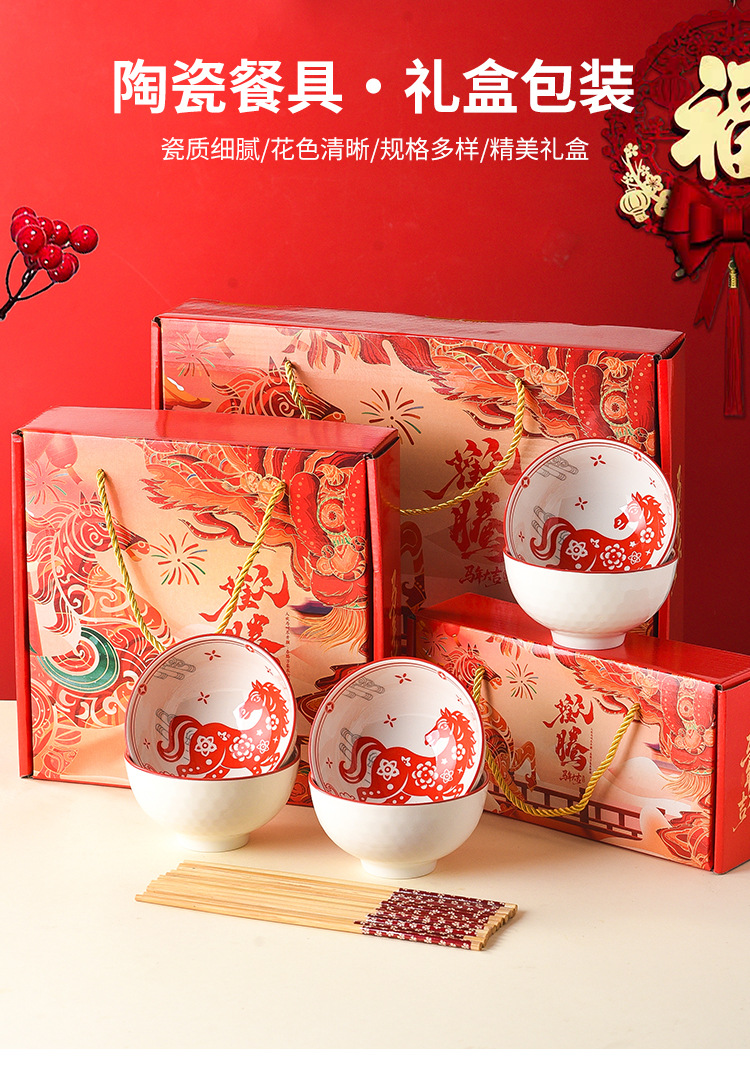 Керамическая чаша года Лошади, маленький подарок, новогодний подарок, набор посуды, практичный сувенир для мероприятий, подарок на ежегодную вечеринку