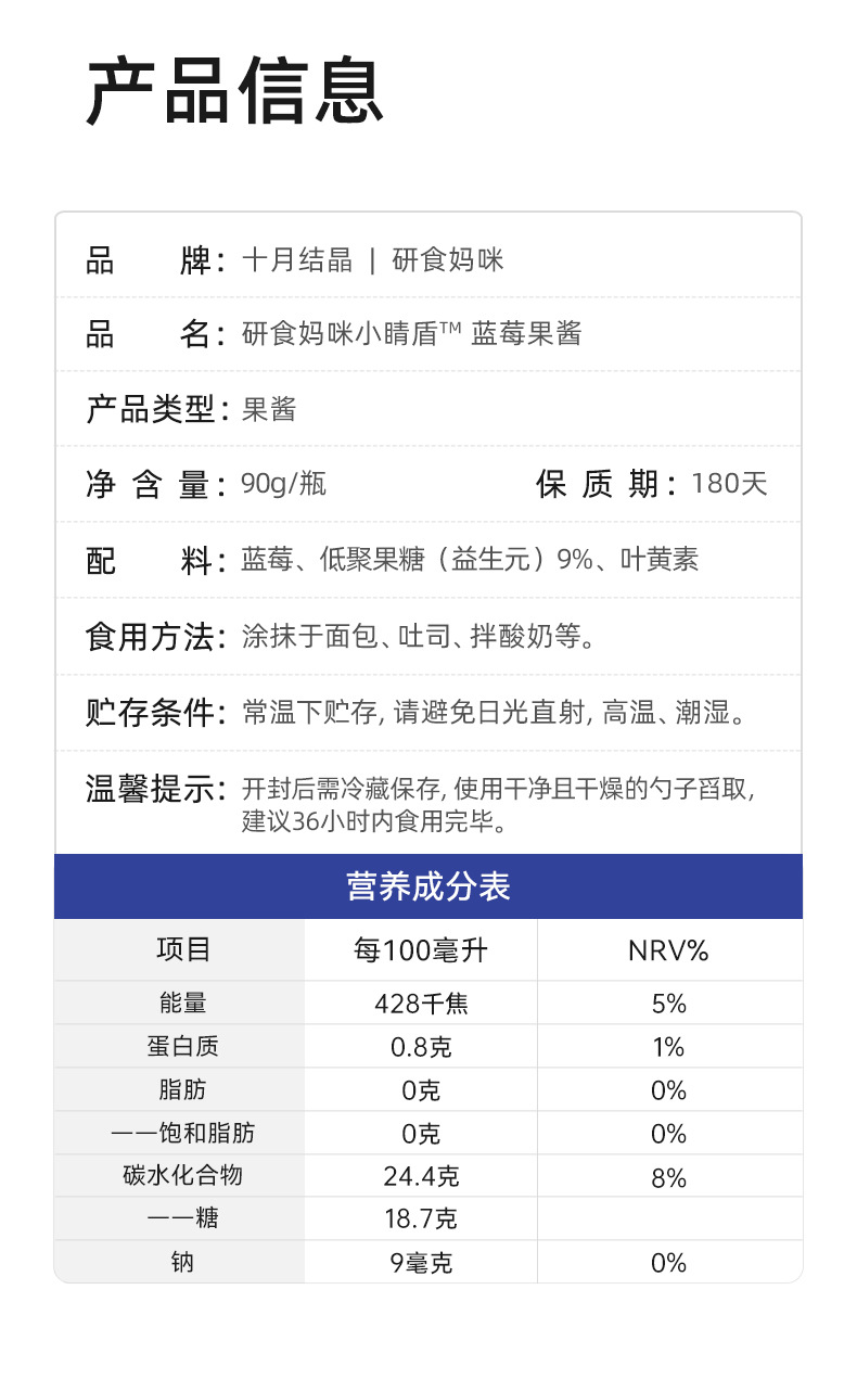 Октябрь Кристалл Исследования Пища Мамы Варенье из Голубики для Беременных Завтрак Хлеб Тосты Пребиотики Лютеин Без Добавок