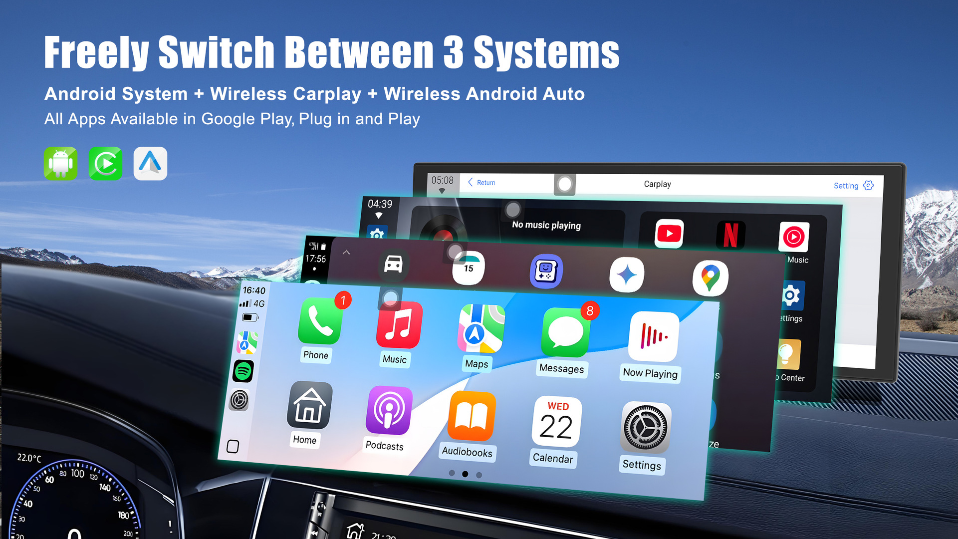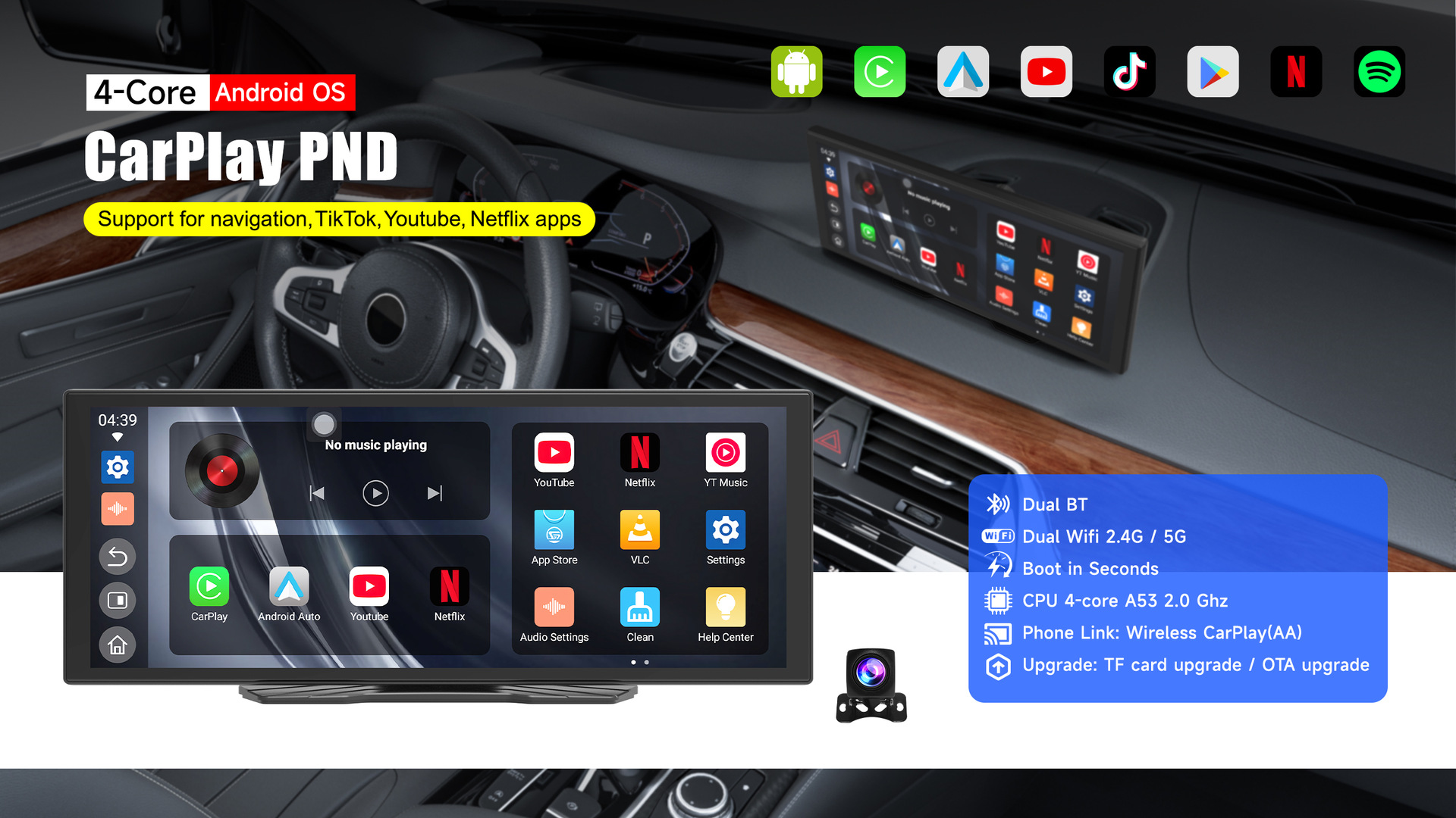 Новый автомобильный навигатор Android, двойной Bluetooth, двойной Wi-Fi, HD, YouTube, 10 дюймов, ультратонкий, Smart Carplay