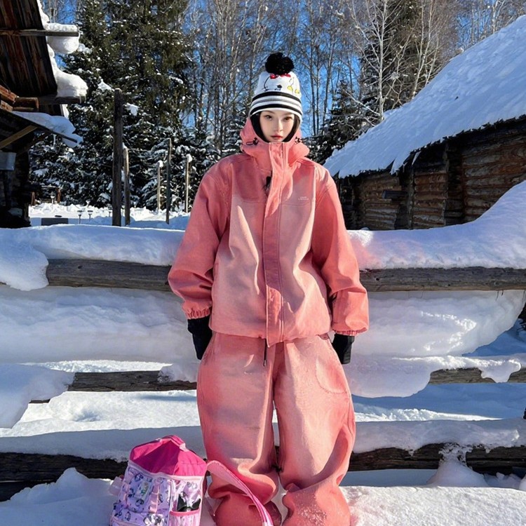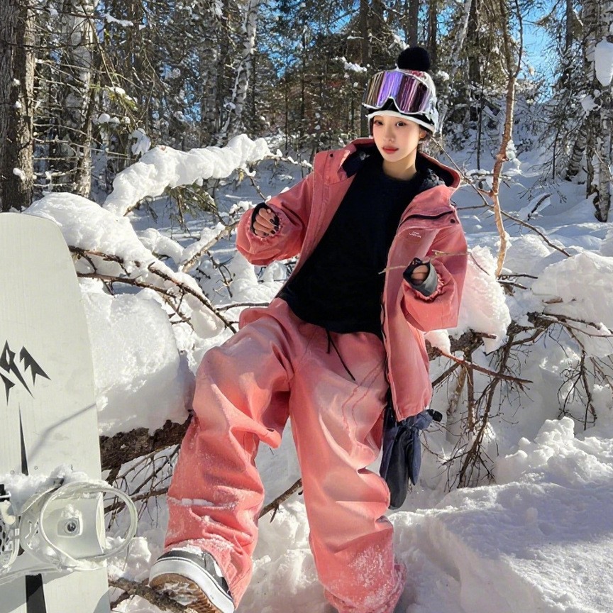 Лыжный костюм Fuyan оранжево-красный градиент женский 2025 осень и зима новый уличный ветронепроницаемые зимние брюки двухкомпонентный комплект