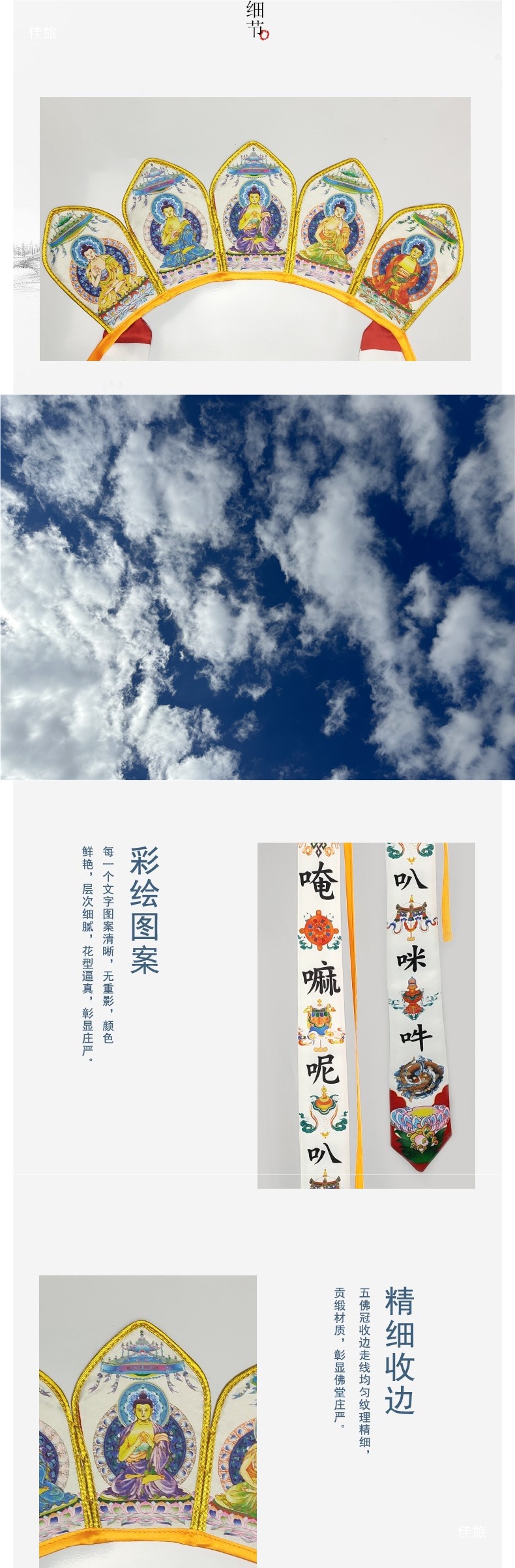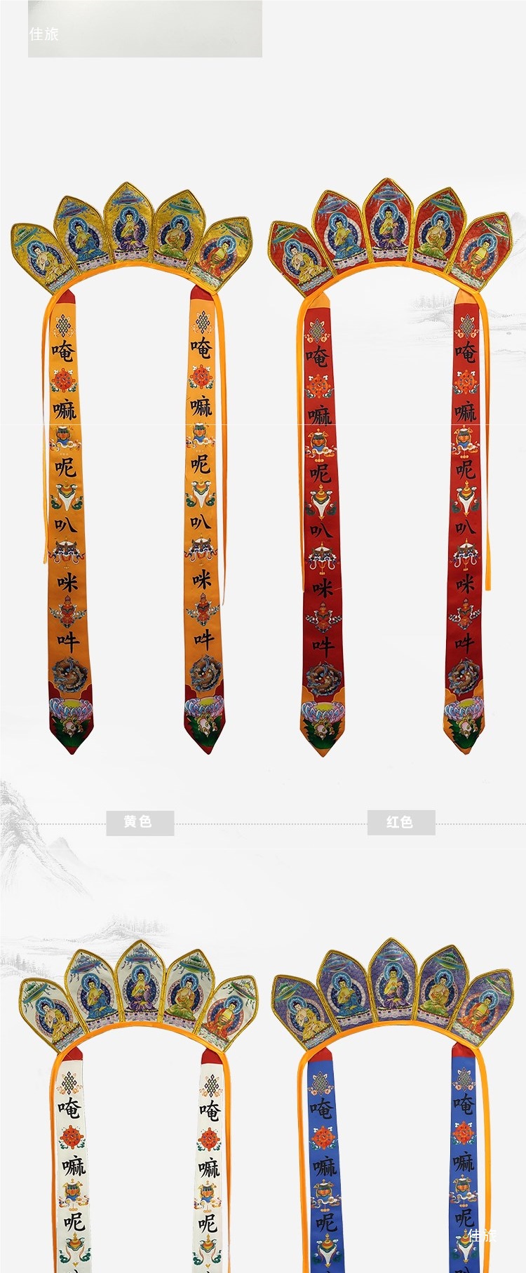 Одежда монаха, шляпа с шестизначным мантрой, шляпа Вайрочаны, шляпа пяти Будд, корона пяти Будд, четыре цвета