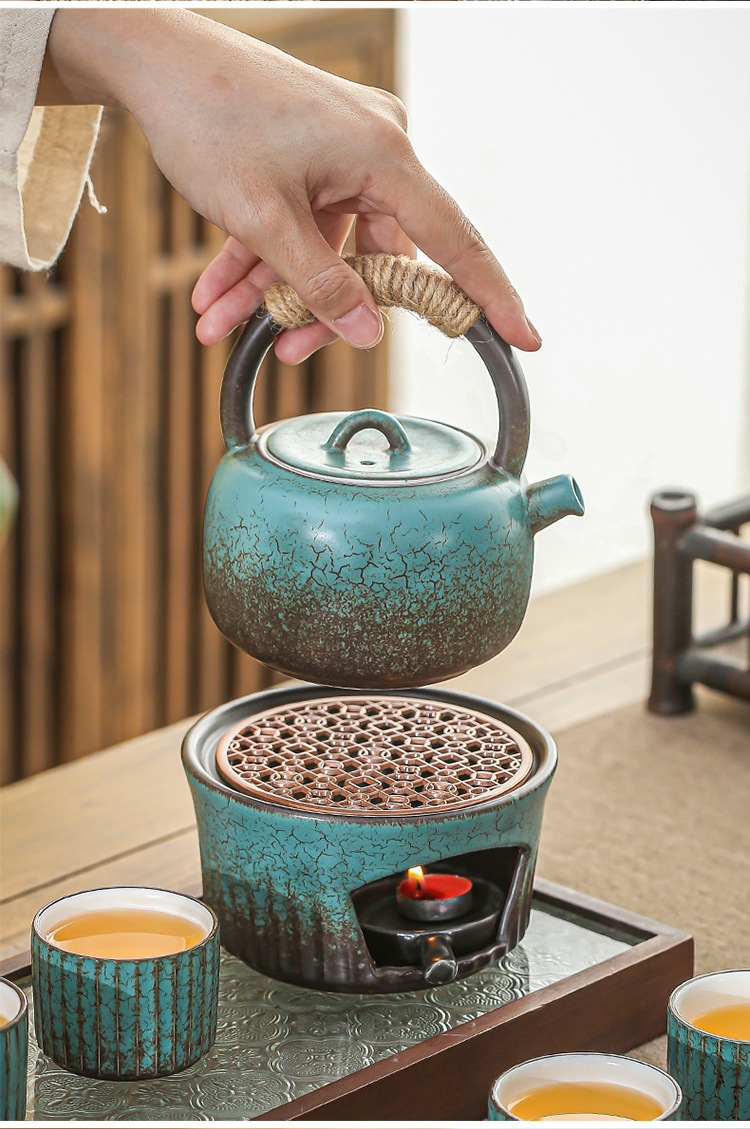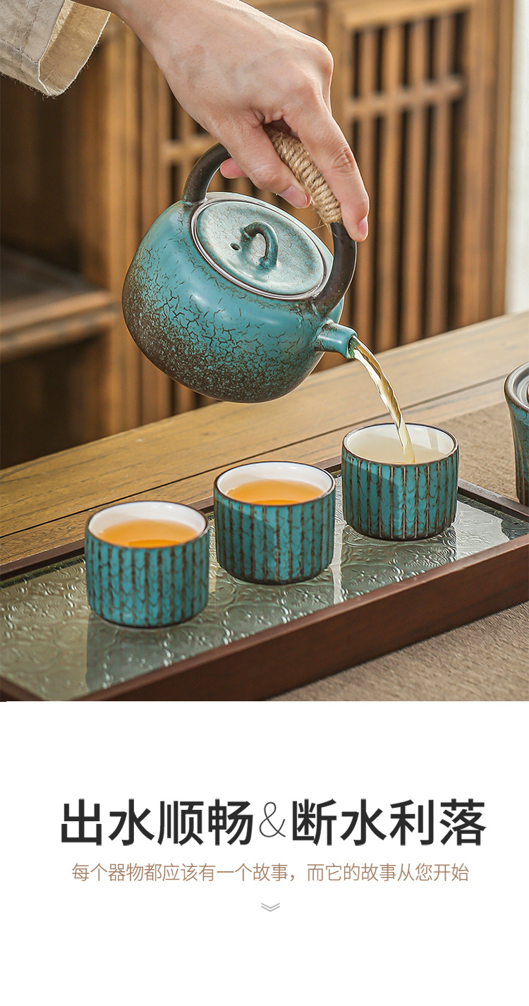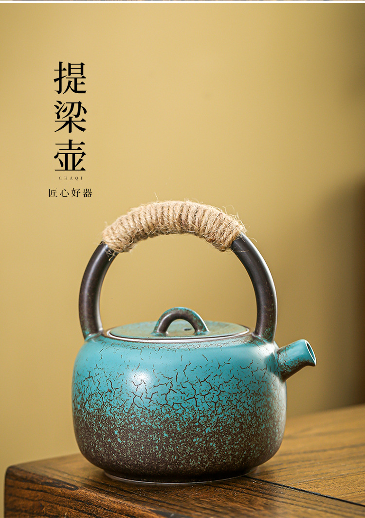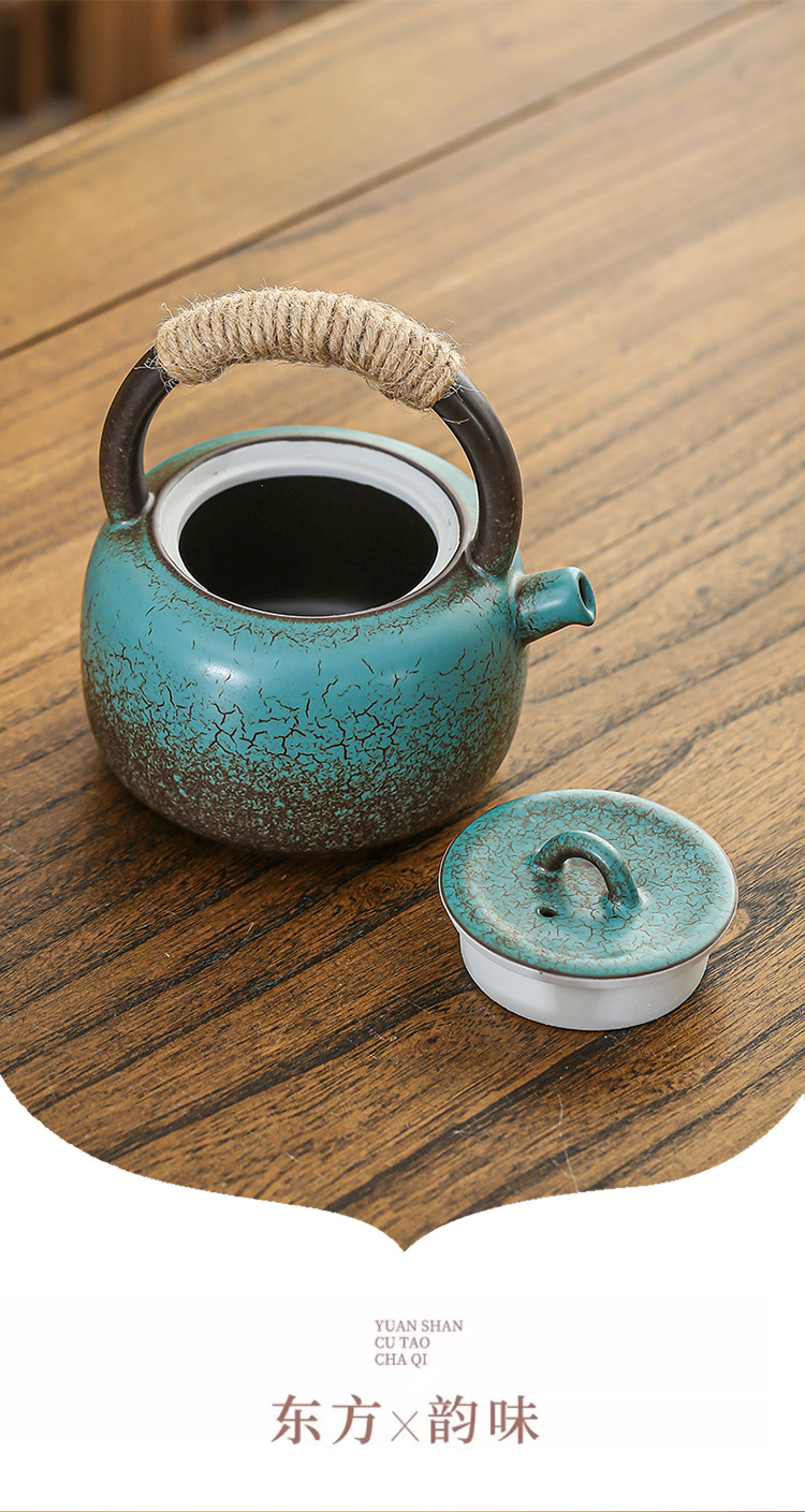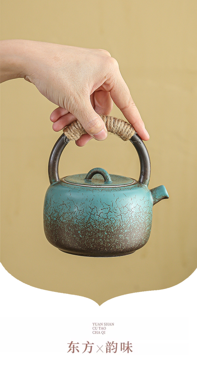 Винтажный японский чайник с ручкой, набор для заваривания чая для домашнего использования, чайник из грубой керамики в антикварном стиле, набор для кунг-фу чая, чайник для воды