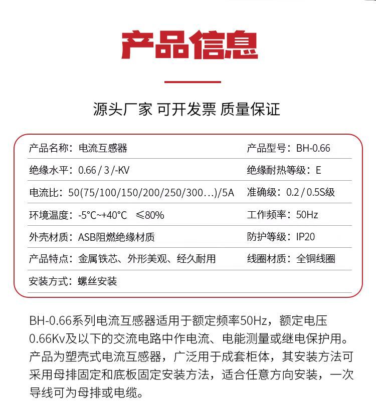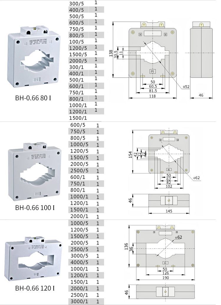 Трансформатор тока переменного тока Bh-0.66-Ct50/5/5150/5 трехфазный 0.5 класса с медной обмоткой от производителя