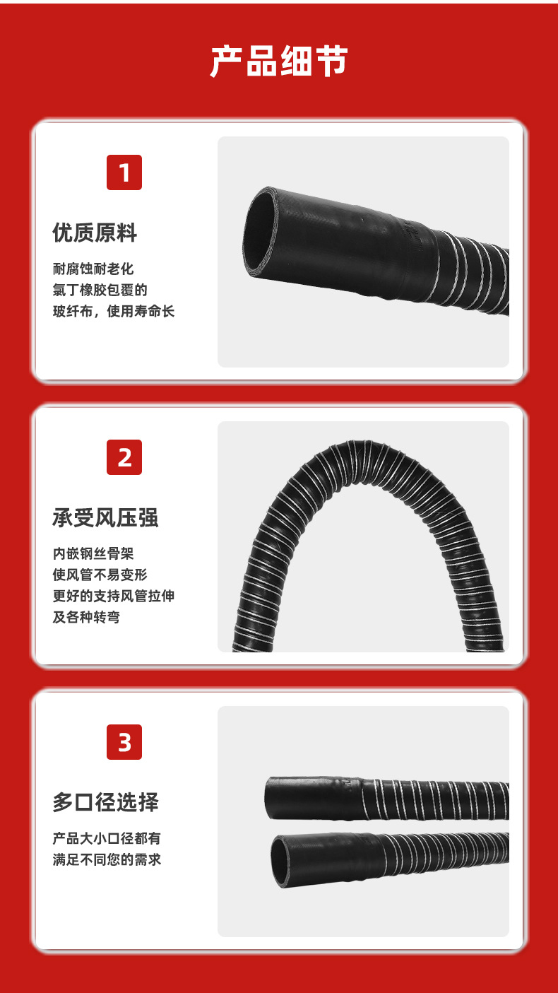 Вентиляционная труба из неопрена Baofang Industrial, устойчивая к высоким температурам, кислотам и щелочам, гибкая вытяжная труба