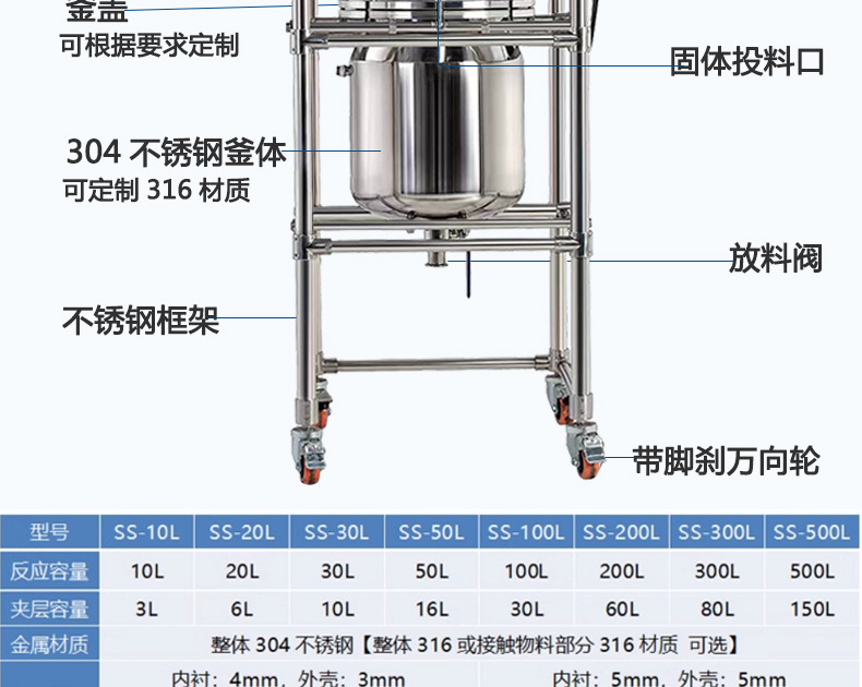 Лабораторный реактор из нержавеющей стали, двойной электрический нагрев, смешивающий бак, малый высокотемпературный и высоконапорный реактор для химического синтеза