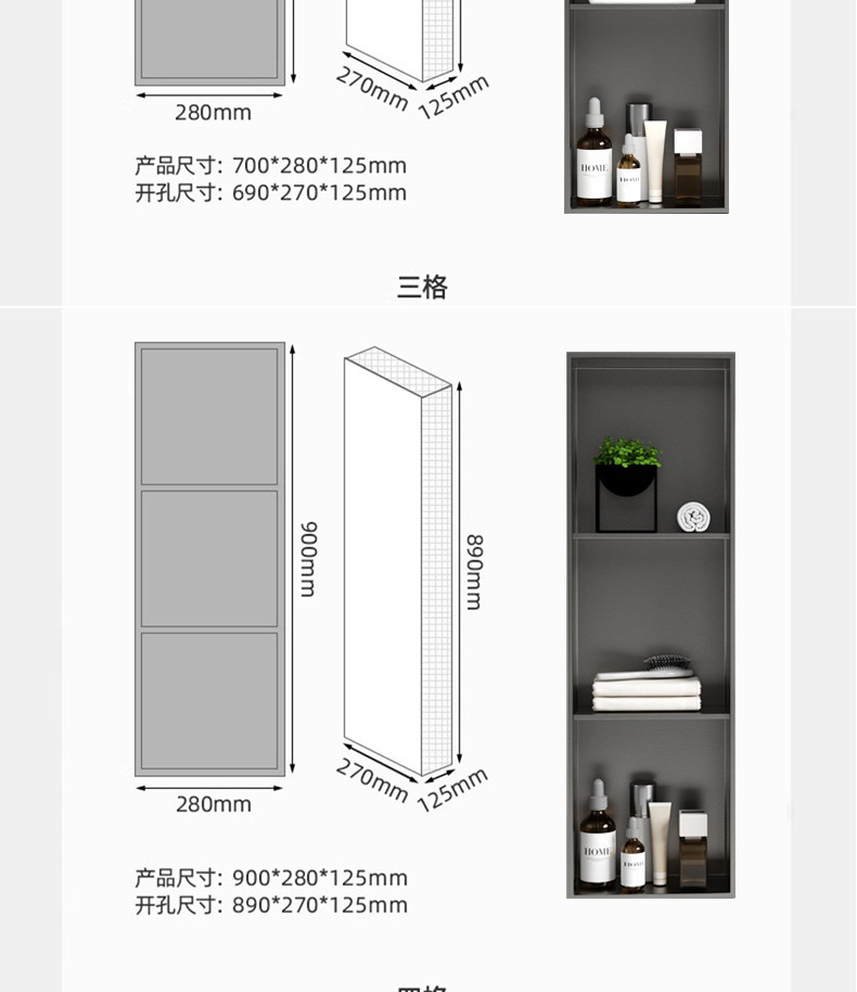 Нержавеющая сталь нишевый шкаф для ванной встроенный нишевый шкаф для душа перегородка для туалета металлическая полка для хранения