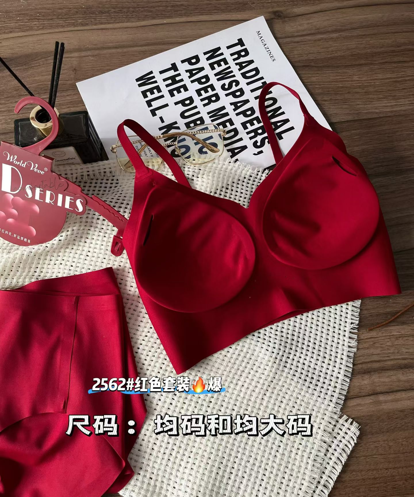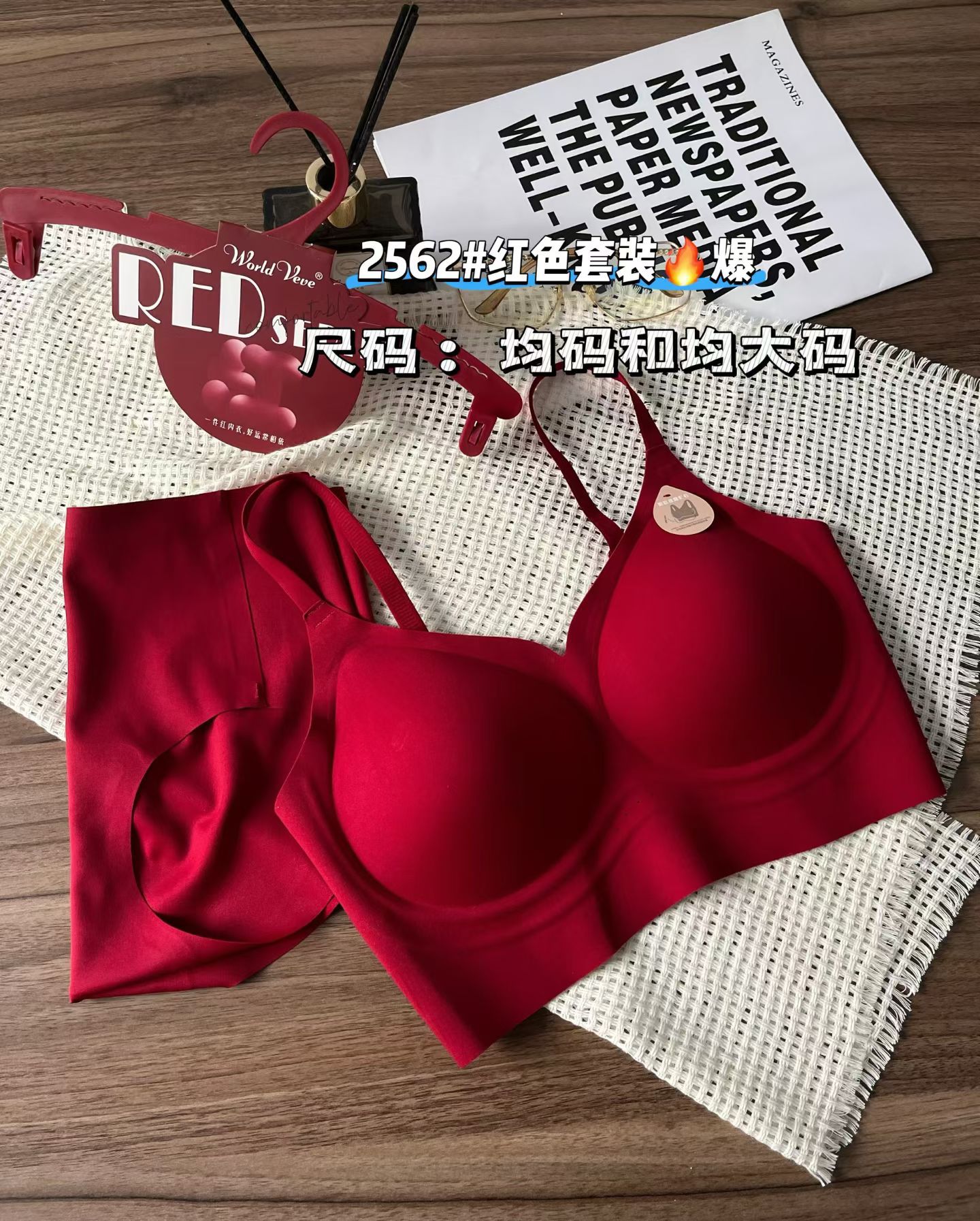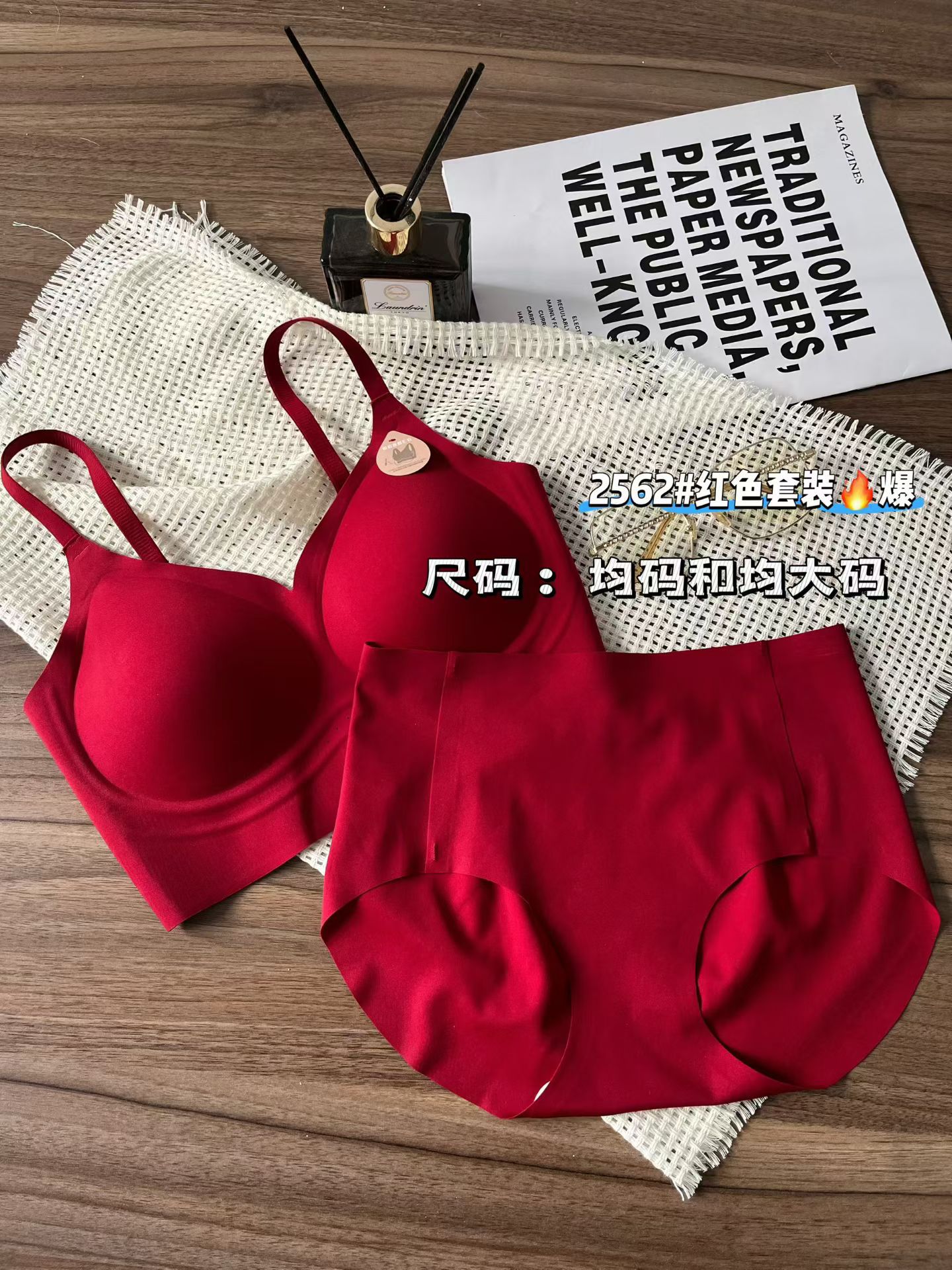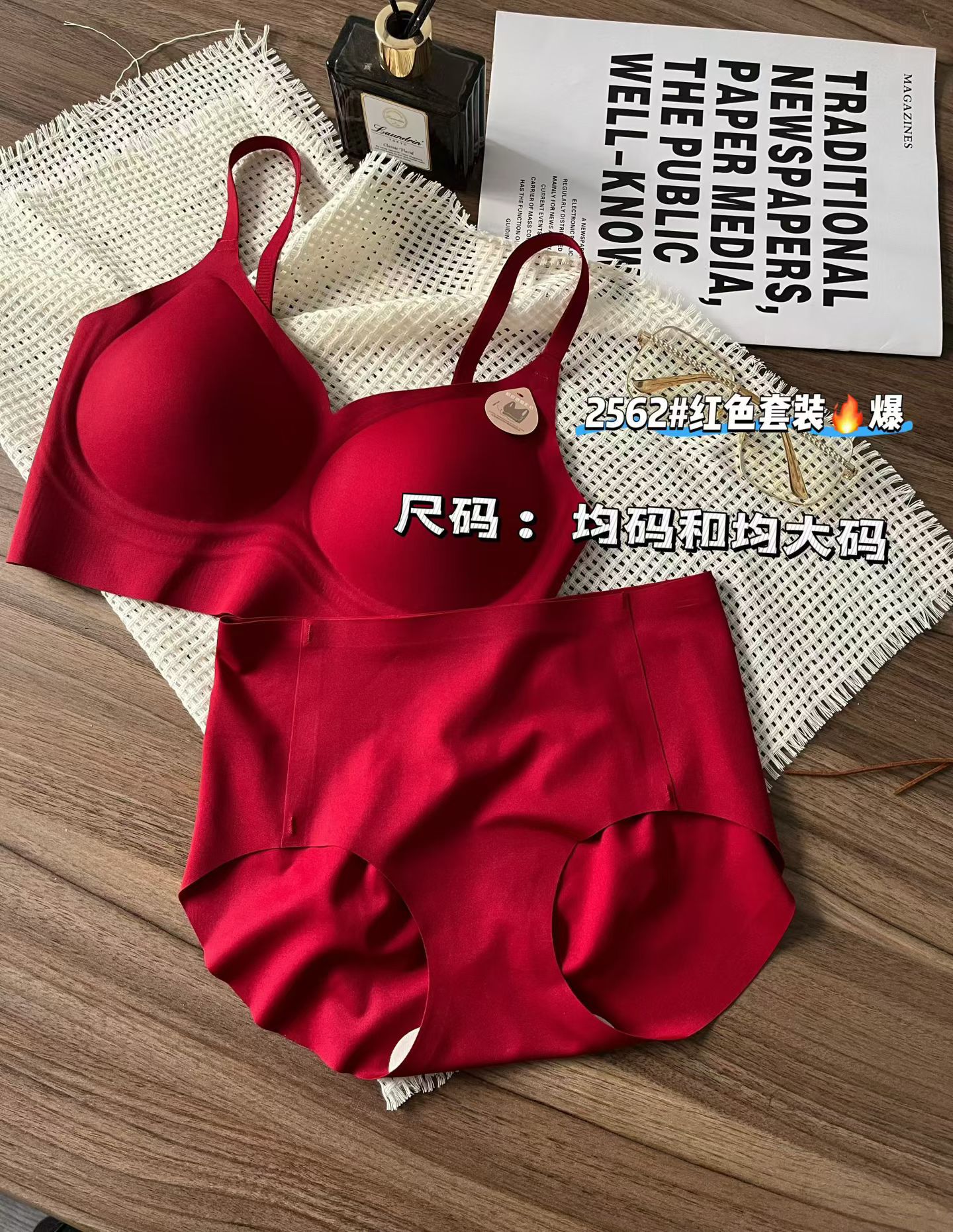Бесшовный комплект красного нижнего белья для года зодиака, модный, с широкой бретелью и красивой спиной